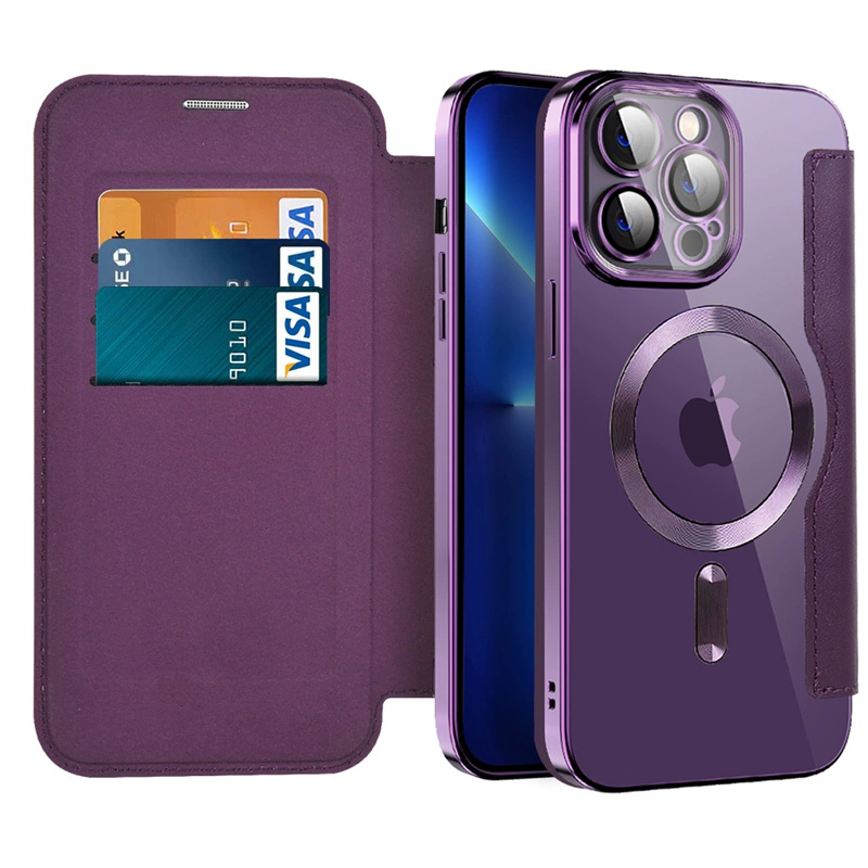 The card holder is suitable for Apple 15 mobile phone case clamshell iPhone 14 pro magnetic charging 13 promax flip cover card 12 to hold cards 11 new plus all-inclusive anti-fall high-end case 1
