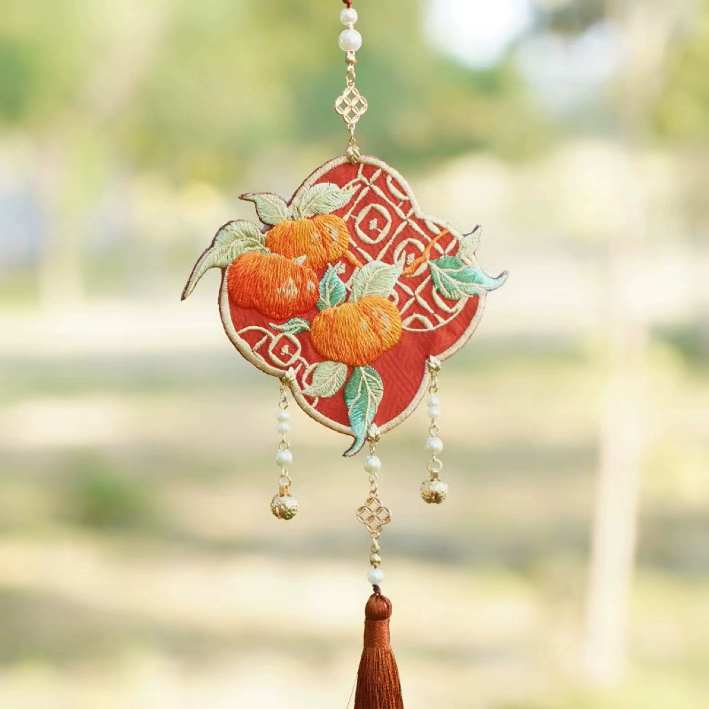 | nameOriginal | The clouds are deep and the fog is shallow, and the happy persimmons are repeated. Original Hanfu accessories, persimmon embroidery, tassel hangings, forbidden steps, horse-faced skirt accessories |