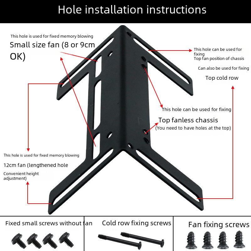 | nameOriginal | The computer host chassis is equipped with a fan fixing bracket, memory air-cooled fast cooling 12/9/8cm radiator |