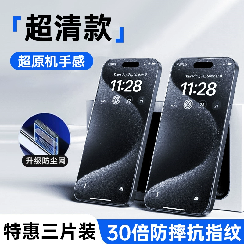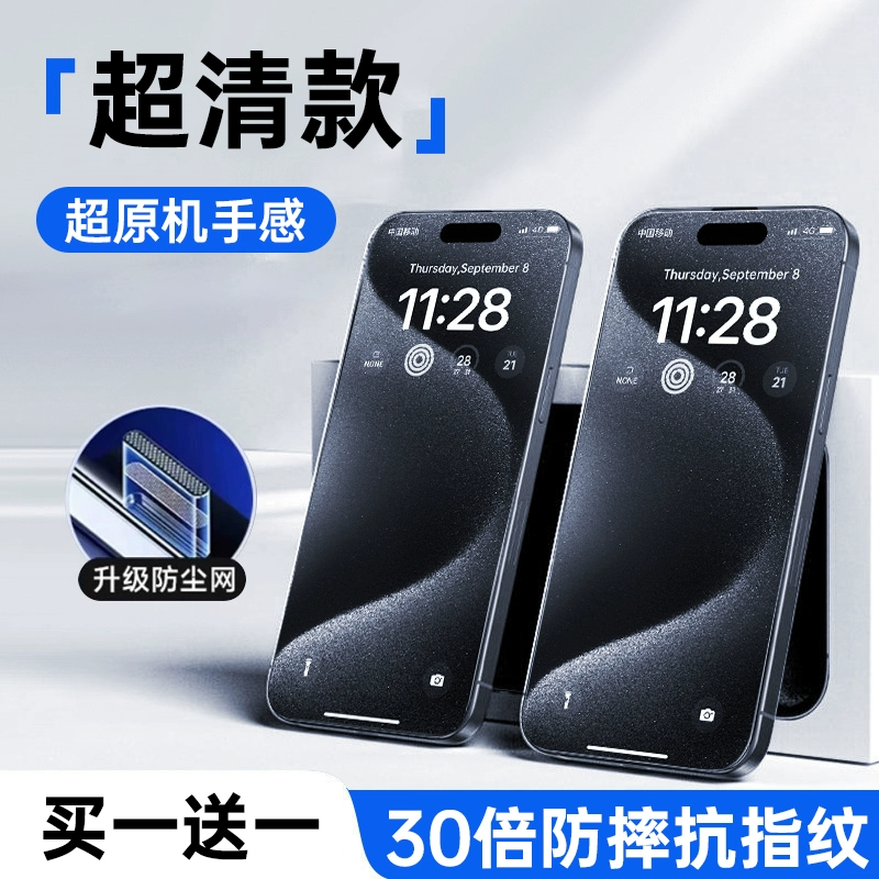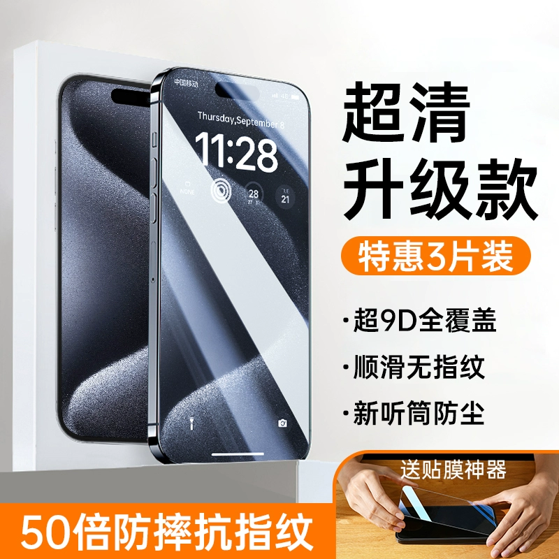 The first guard is suitable for iphone15promax tempered film Apple 15/14 mobile phone film 13pro new style 12 full screen 11 film xs high definition ip anti-fingerprint pm anti-fall por anti-peeping xr eye protection i