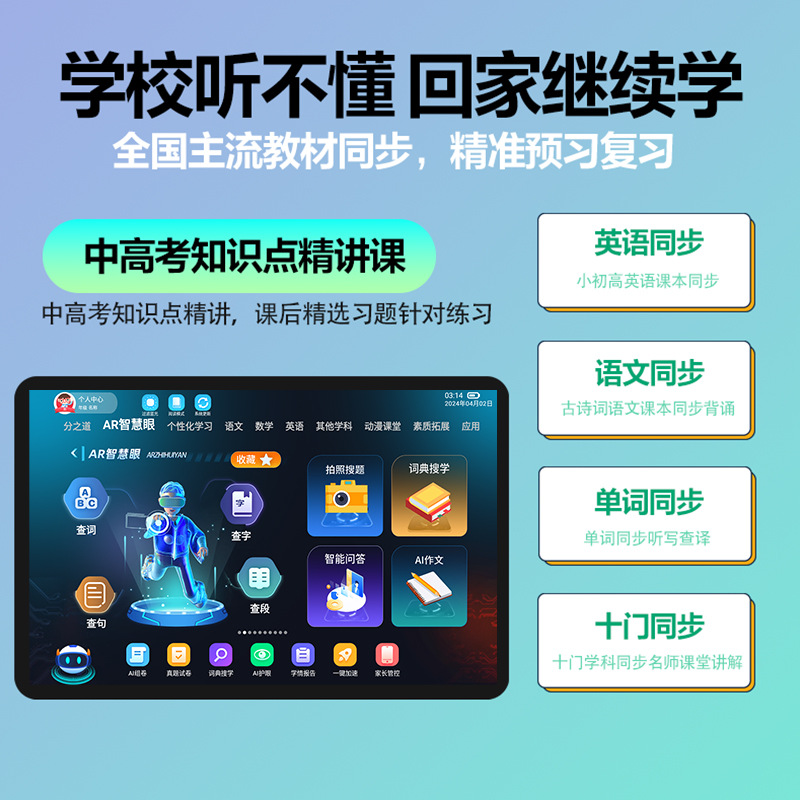 | nameOriginal | The first school learning machine children/primary school/junior high school/senior high school teaching materials synchronous intelligent point reading tutor tablet |
