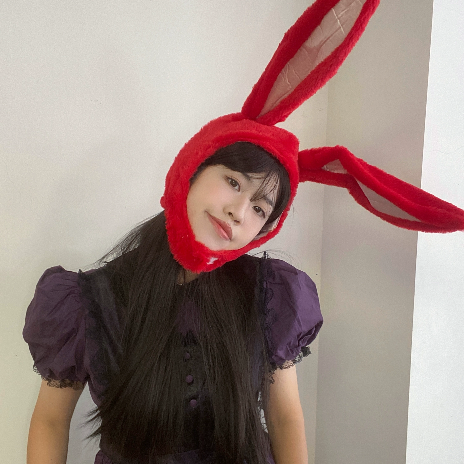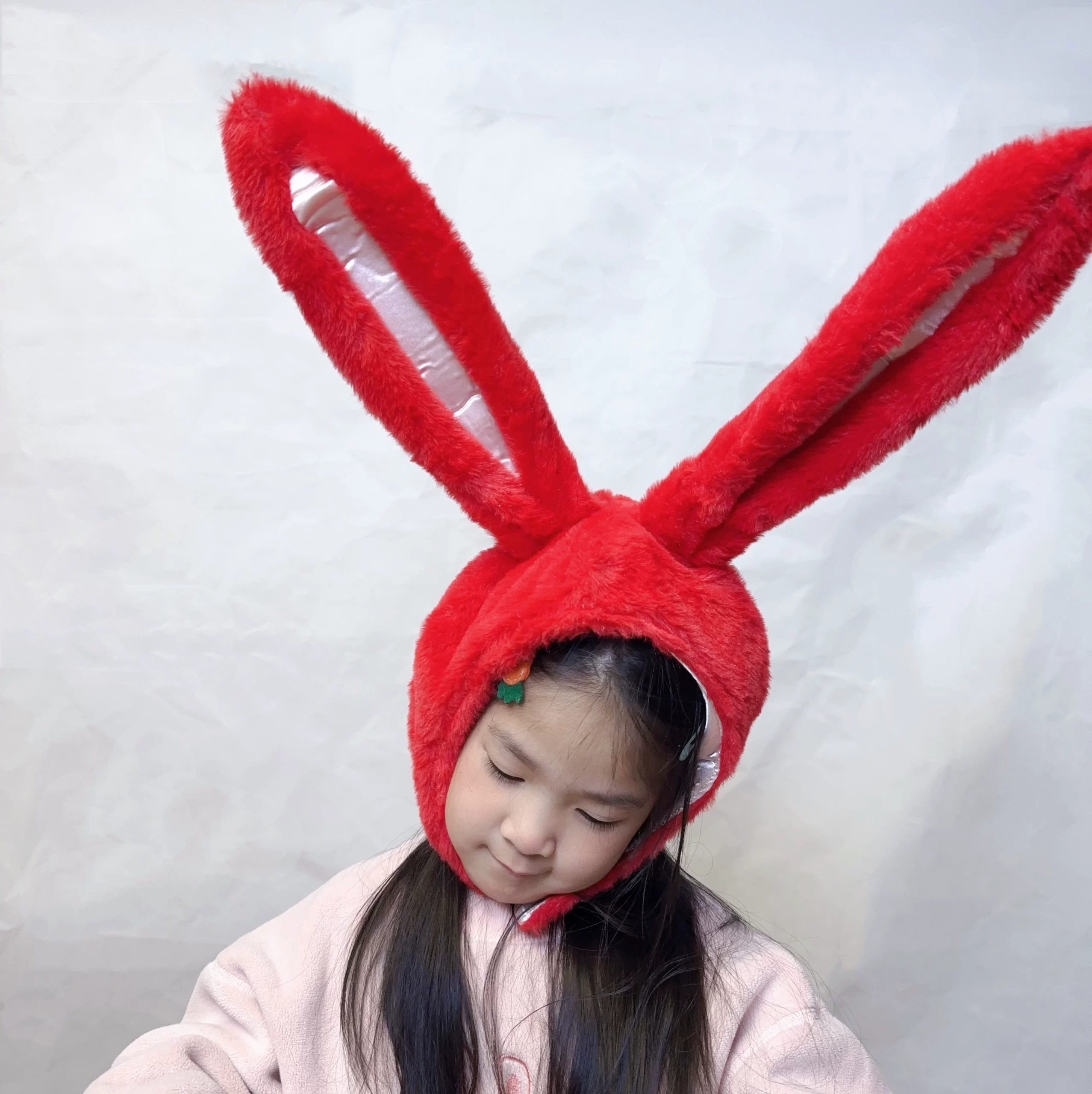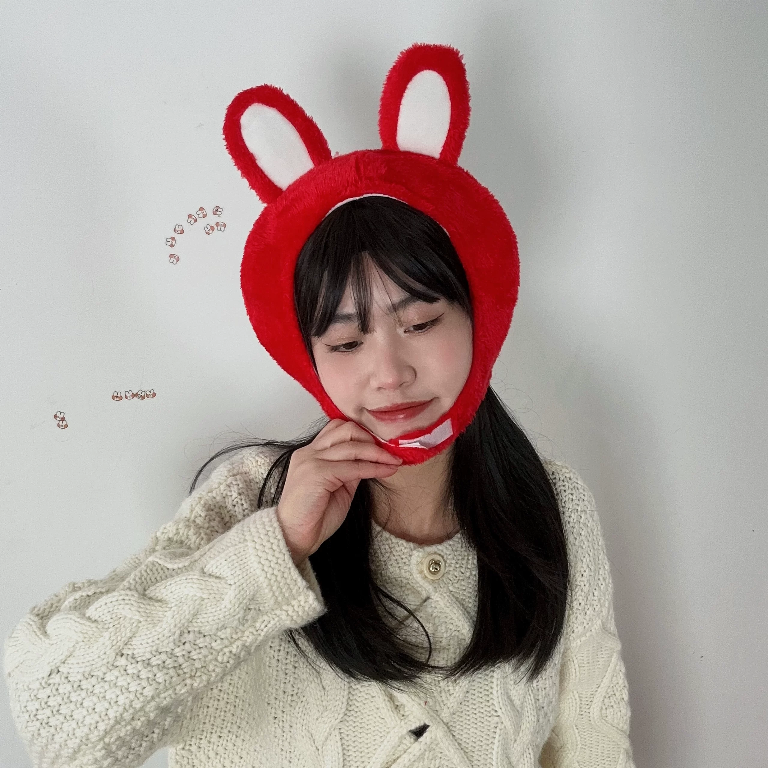 The Year of the Rabbit Mascot Cute Funny Girl Heart Happy Red Bunny Rabbit Ear Holding Hat Hat Motor Photo Performance