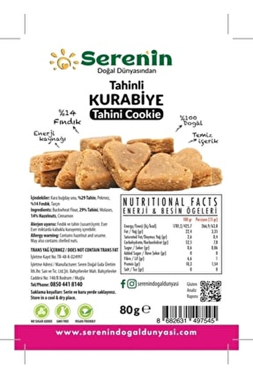 Suitable for gluten-free and vegan diets, these delicious cookies are made with healthy and natural ingredients such as tahini, nuts, buckwheat flour and molasses. These cookies can also be consumed by celiac patients and those who follow a gluten-free diet. Tahini and nuts provide protein and healthy fats, adding a hearty flavor to these cookies. Buckwheat flour, on the other hand, provides these cookies with a healthy source of carbohydrates and facilitates digestion, as it does not contain gluten. Molasses is a natural sweetener, which prevents the use of refined sugars, while enhancing the sweetness of these cookies. These cookies can be served as a snack or with drinks such as coffee, tea and hot chocolate. It is also a healthy snack option that you can also present as a gift to your loved ones. We manufacture according to your order so that you can eat our products fresh fresh. When you eat, you will understand the difference:)