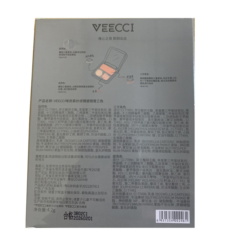 | nameOriginal | The only three-color concealer plate to cover spots on the face pockmarks black circles pockmarks brighten skin tone novice beginners |