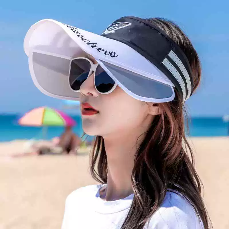 The peaked cap is a sun protection device with a large brim and hollow top that covers the face when riding a bicycle.
