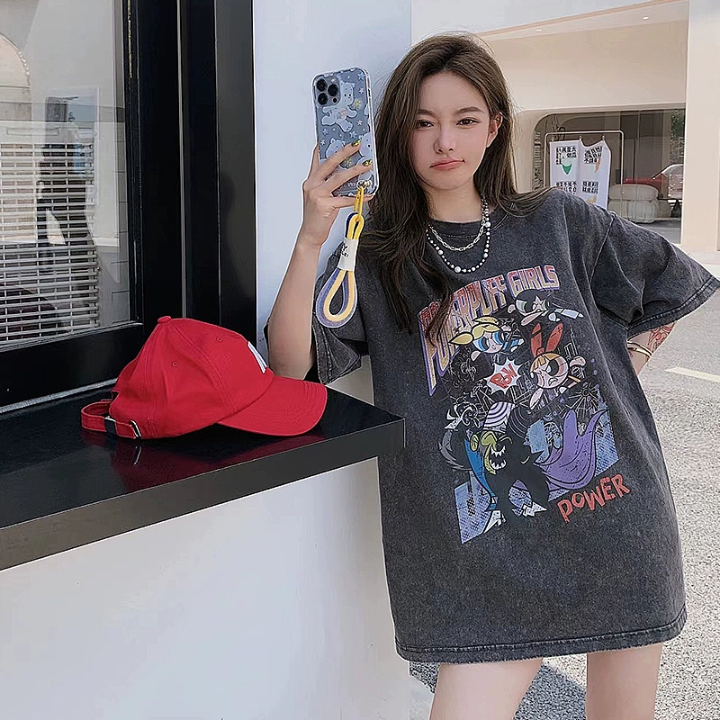 | nameOriginal | The Powerpuff Girls Distressed Short Sleeve T-Shirt Loose Cartoon |