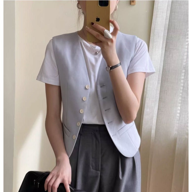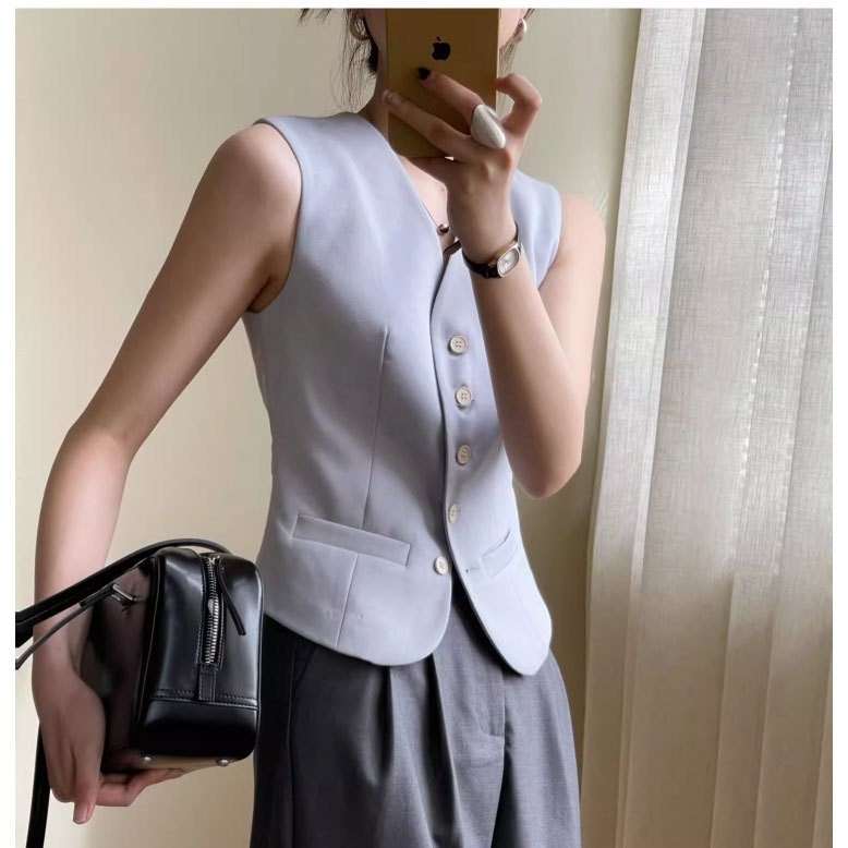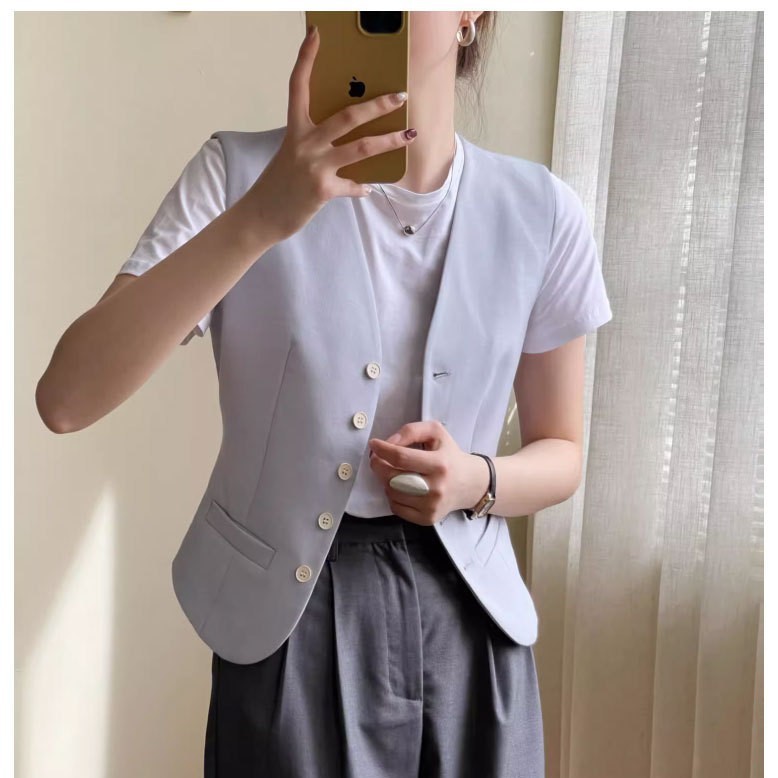 | nameOriginal | The smart and fashionable old money style stacked cool sleeveless button waistcoat is slim and tall and light breathable jacket |