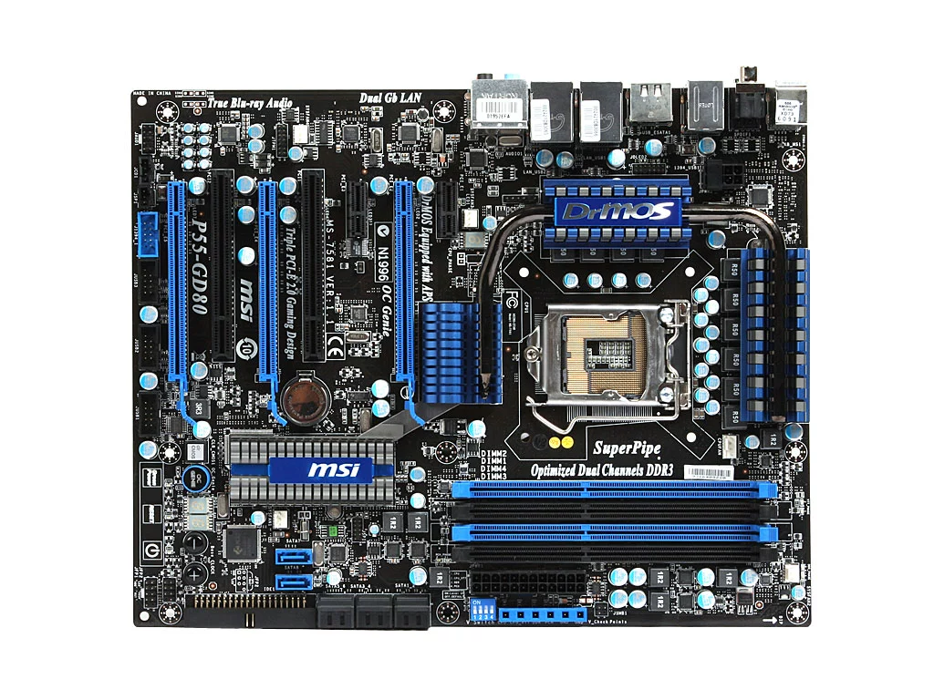 | nameOriginal | The stock has not been used on the machine MSI/MSI P55-GD80 1156 motherboard large board P55 DDR3 SLI dual network |