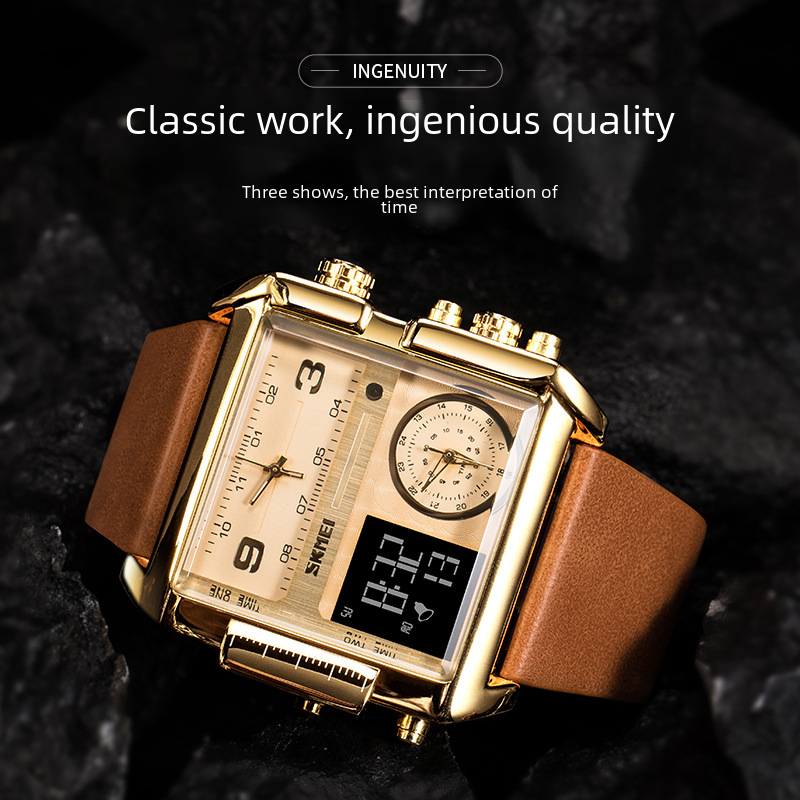 | nameOriginal | The time is beautiful and fashionable men's square large dial domineering three-display quartz watch 1391 watch factory outlet |