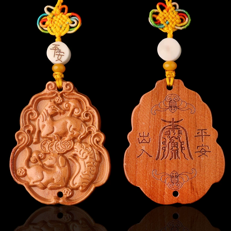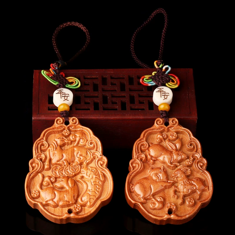 | nameOriginal | The twelve 12 zodiac signs in 2024 are rat, ox, tiger, rabbit, dragon, snake, horse, sheep, monkey, chicken, dog, and pig. Three-way peach wood pendant |