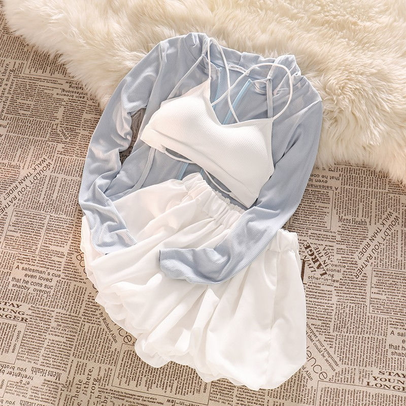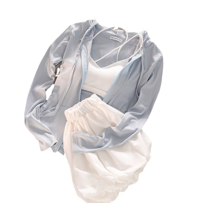 | nameOriginal | The upper body looks ten thousand times better than missing the solid color cardigan top women's casual bud shorts sunscreen full set |
