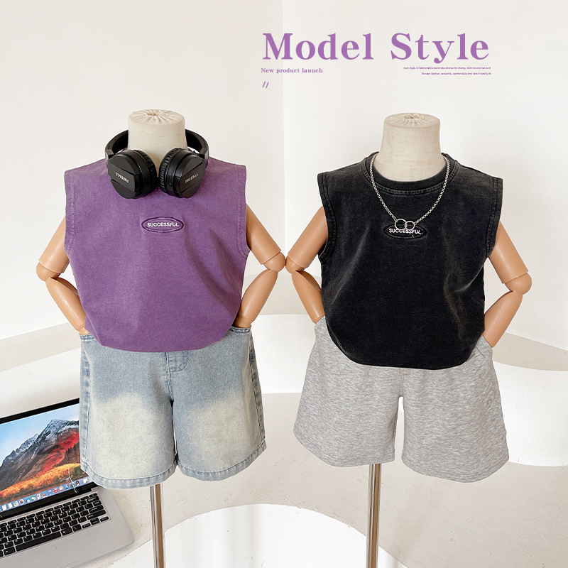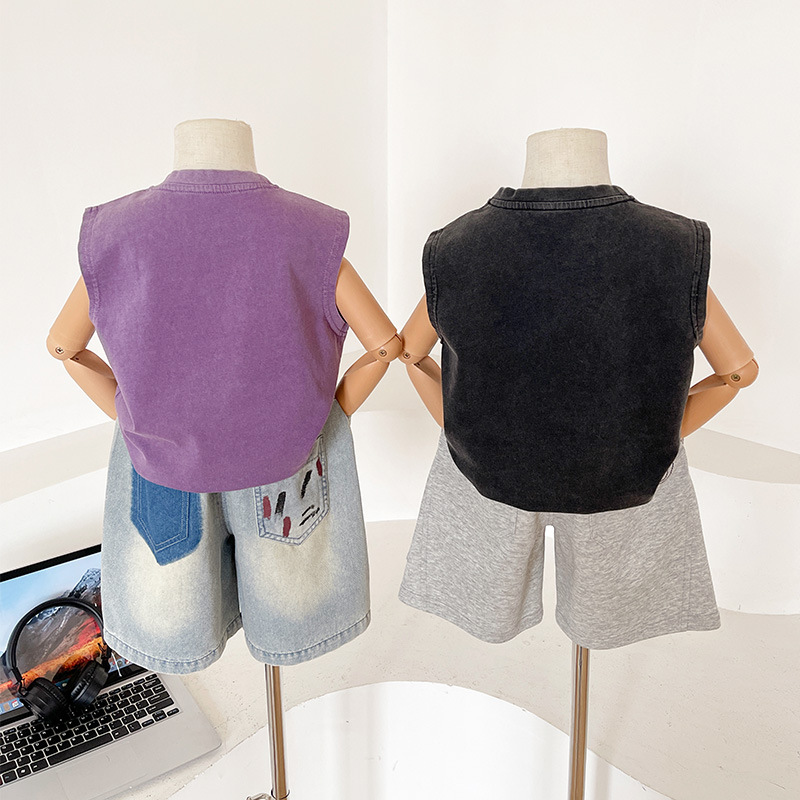| nameOriginal | The Valley of the Wind 2024 Summer New Children's Wear Korean-style Washed Old Letter Vest Handsome Sleeveless for Boys and Girls |