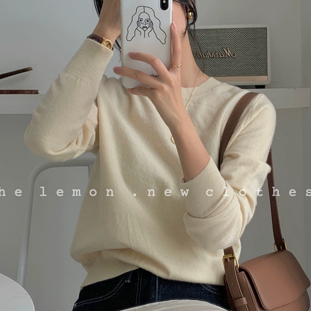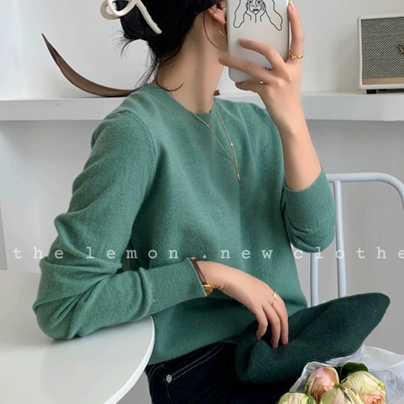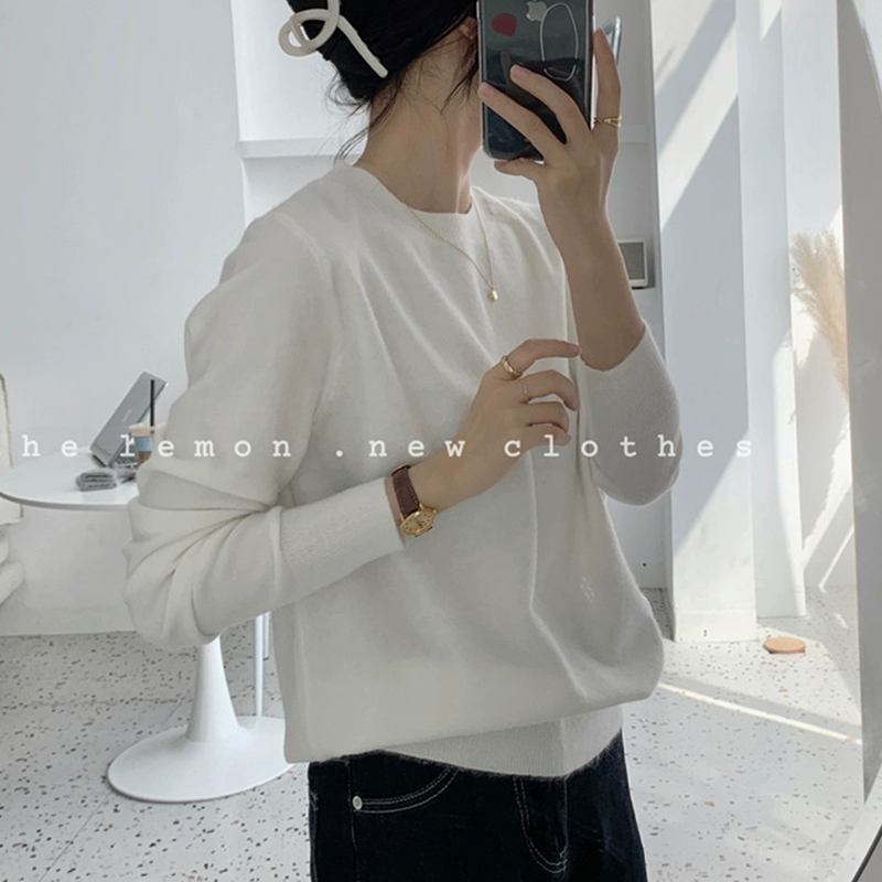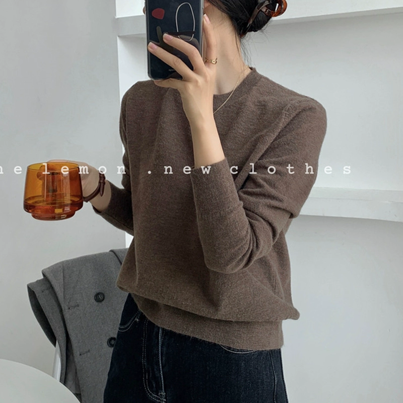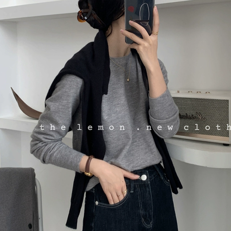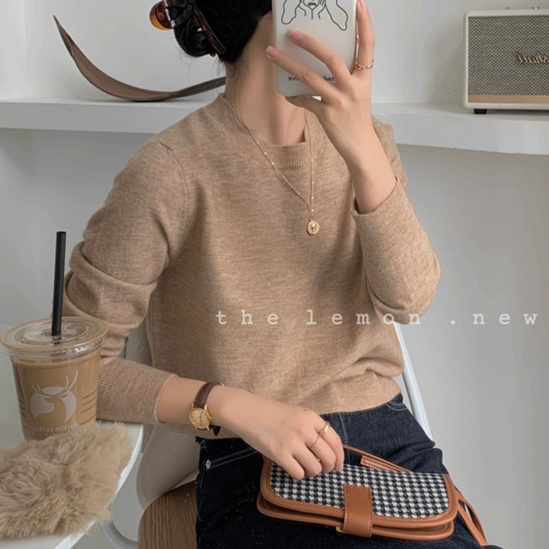 TheLemon round neck long sleeve soft and waxy fitted thin sweater