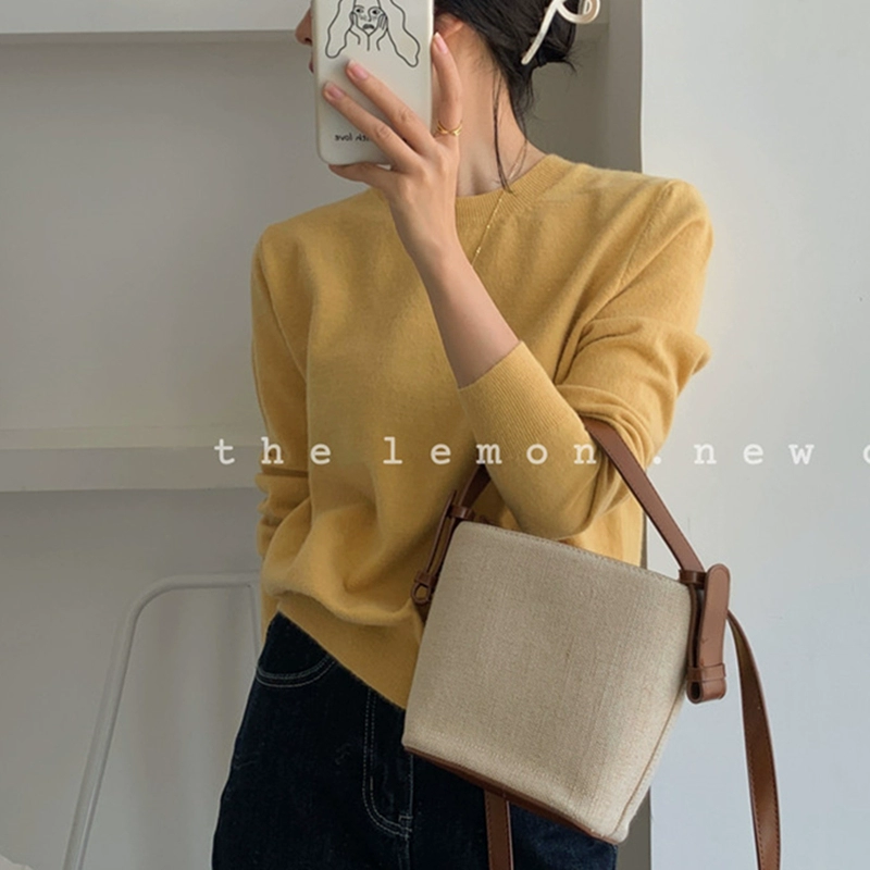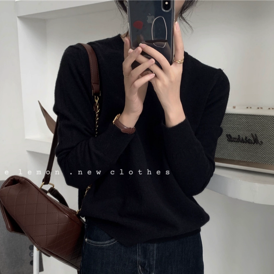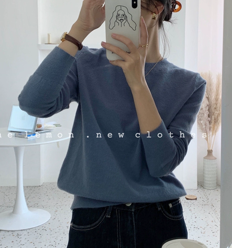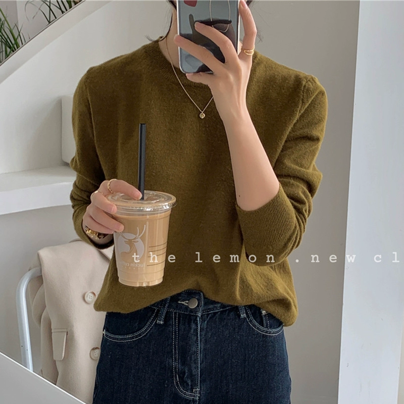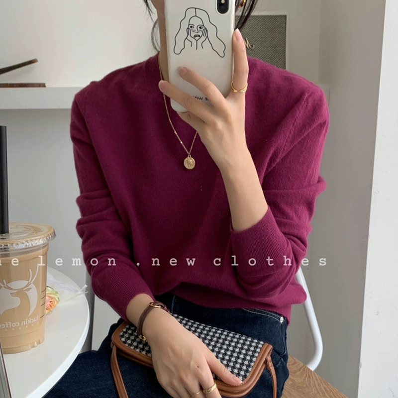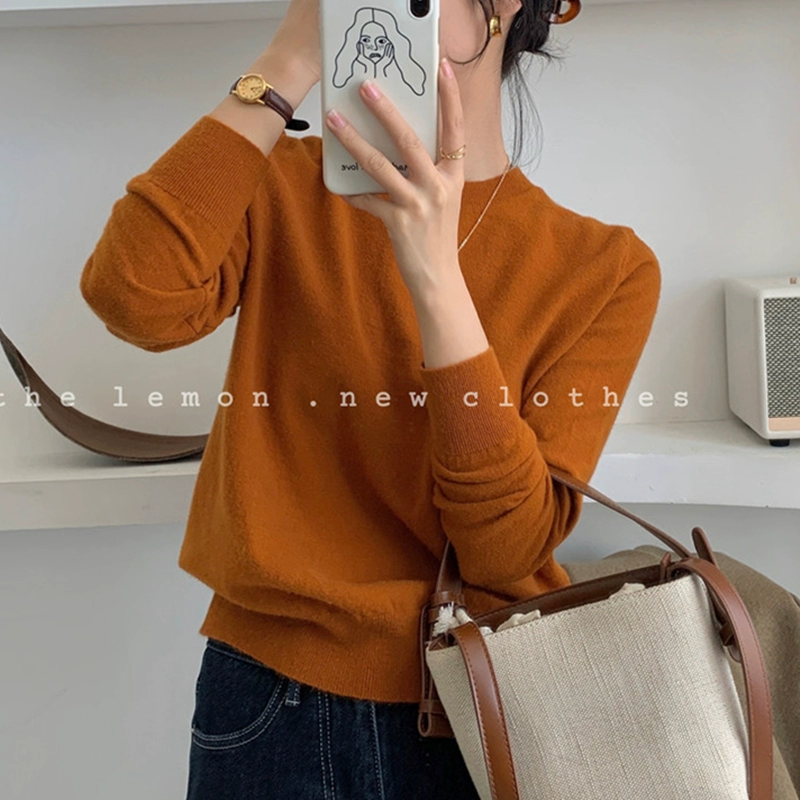 TheLemon round neck long sleeve soft and waxy fitted thin sweater