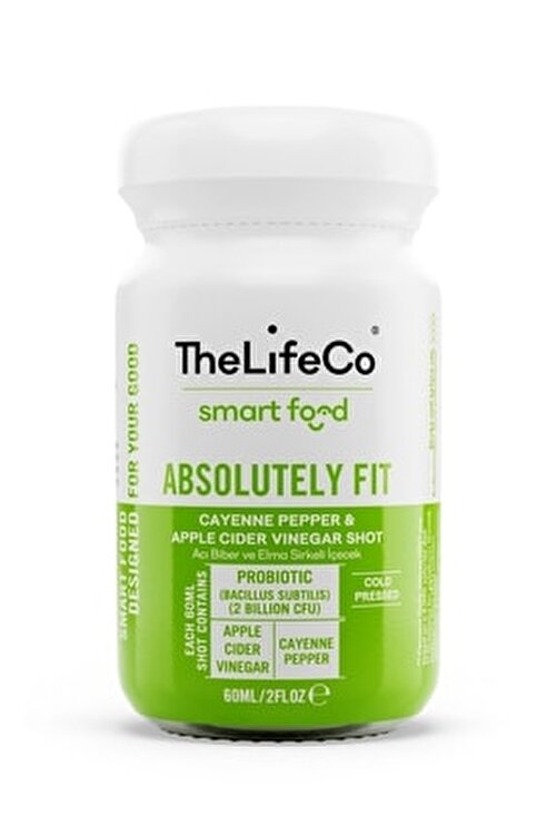 TheLifeCo SmartFood Absolutely Fit (Hot Pepper & Apple Vinegar Shot 60ml) Hot Pepper and Apple Vinegar Shot Drink contains apple cider vinegar, hot pepper, lemon juice, ginger tea, apple juice, turmeric tea, black pepper, paprika, garlic and 2 billion probiotic microorganisms (Bacillus Subtilis). Probiotic microorganisms help regulate the digestive system and support the immune system. TheLifeco SmartFood Absolutely Fit Shot is designed to offer you the pill/powder form probiotics you’ve become accustomed to today in the form of a delicious shot drink. It is a purpose-designed product with apple cider vinegar, hot pepper, lemon juice, ginger tea, apple juice, turmeric tea, black pepper, paprika, garlic and probiotic microorganisms. The 60ml Absolutely Fit Shot contains 2 billion probiotic microorganisms (Bacillus Subtilis). Probiotic microorganisms help regulate the digestive system and support the immune system.