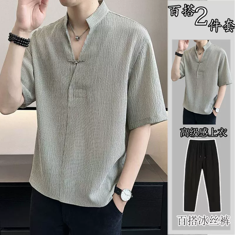 | nameOriginal | theoryharvey new Chinese style short-sleeved shirt men's summer thin casual trendy t-shirt shirt advanced |