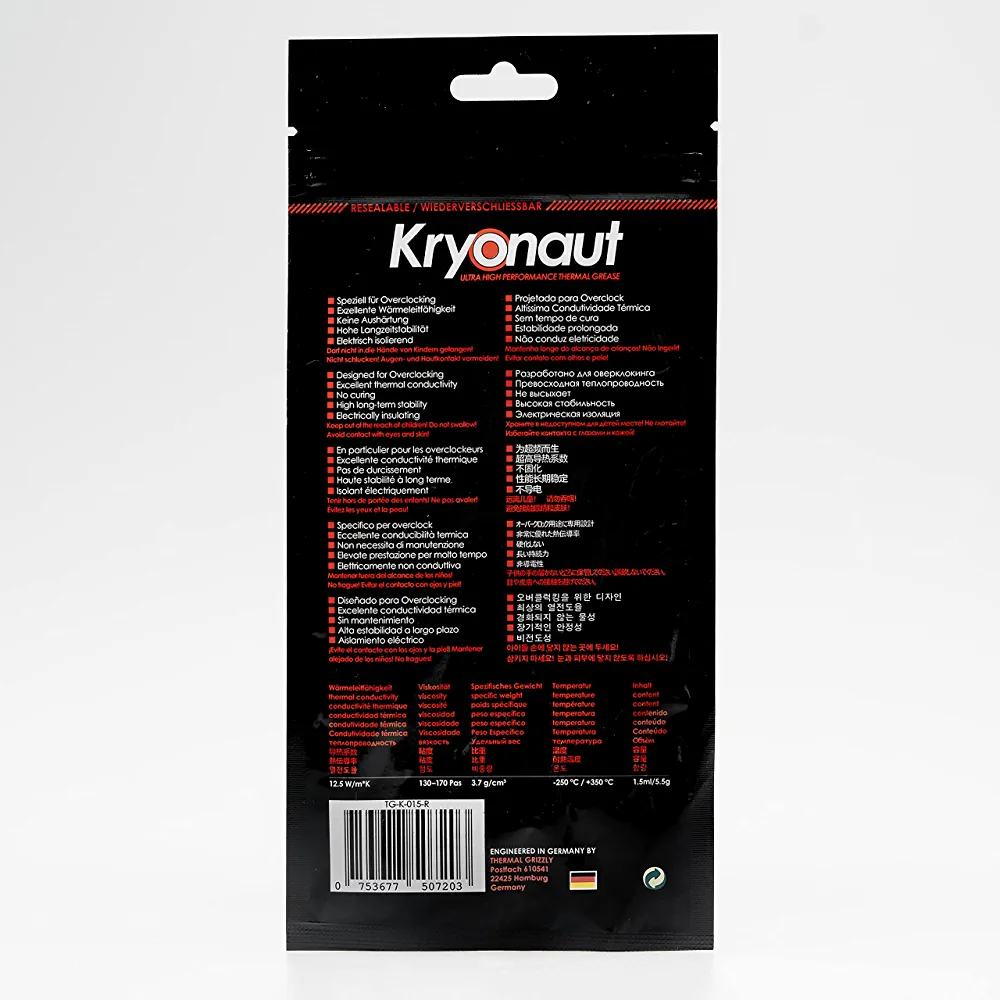 Introducing Kryonaut thermal grease, a high-performance product designed to meet the demanding needs of the overclocking community and critical cooling systems in industrial environments. With a thermal resistance of 0.0032 K/W and no electrical conductivity, Kryonaut is an excellent choice for those seeking top-quality thermal grease.