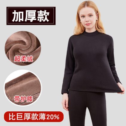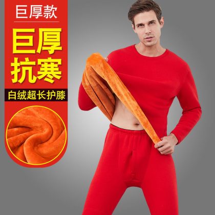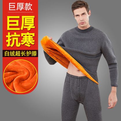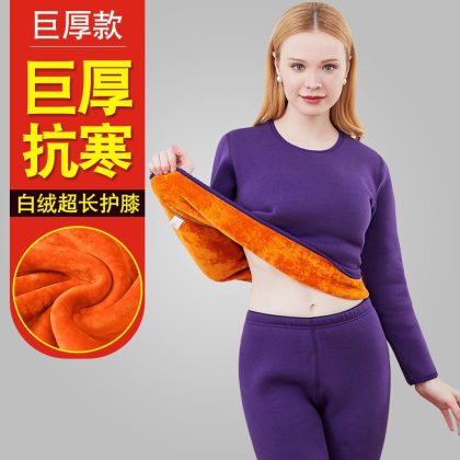 Thermal Underwear suit Women’s fleece-lined Thickened Middle-aged and Elderly Men’s Winter Cold-proof Solid Color Autumn Clothes and Pants Women’s Winter