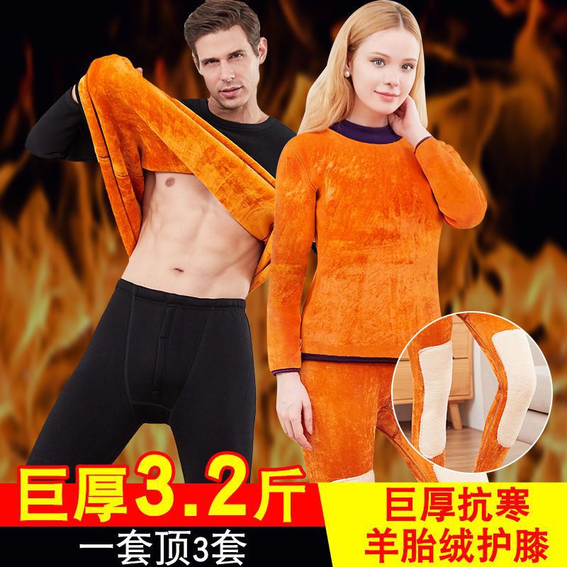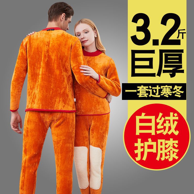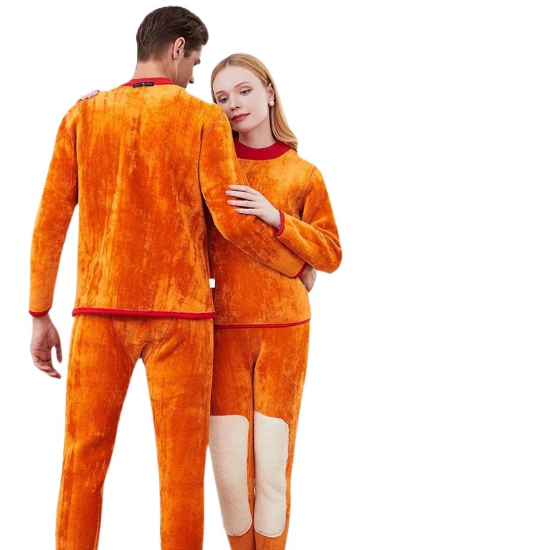 Thermal Underwear suit Women's fleece-lined Thickened Middle-aged and Elderly Men's Winter Cold-proof Solid Color Autumn Clothes and Pants Women's Winter