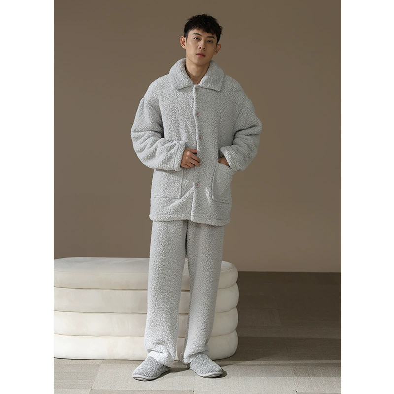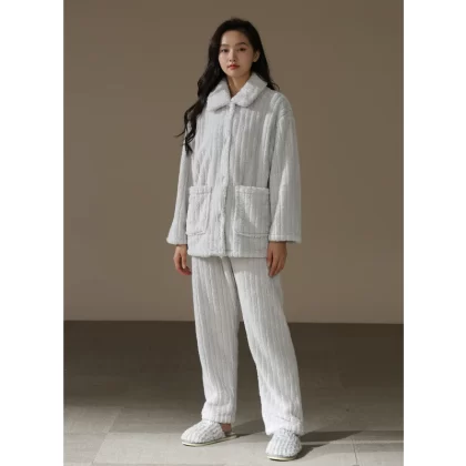 [Thick and Velvet] Couple Pajamas Women's Autumn and Winter Coral Fleece Warm Teenage Plush Home Clothing Suit Men's