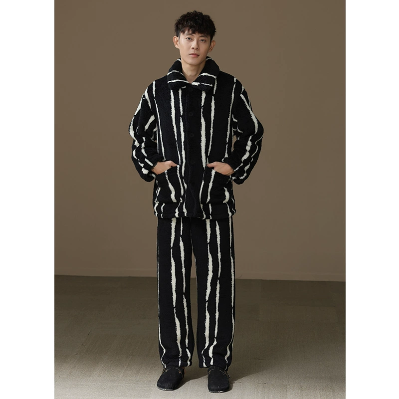 | nameOriginal | [Thick and Velvet] Men's Pajamas Autumn and Winter Coral Fleece Warm Cardigan Home Clothes Can Be Weared Out Flannel Suit |