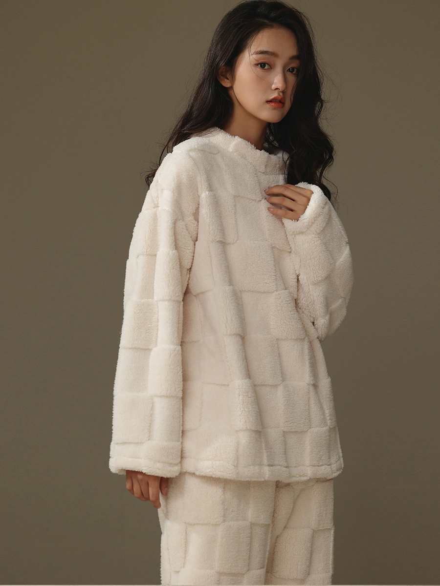 "Thick and Velvet" Warm Pajamas for Women Winter Coral Velvet Plush Plaid Autumn and Winter Wearable Pullover Home Clothes