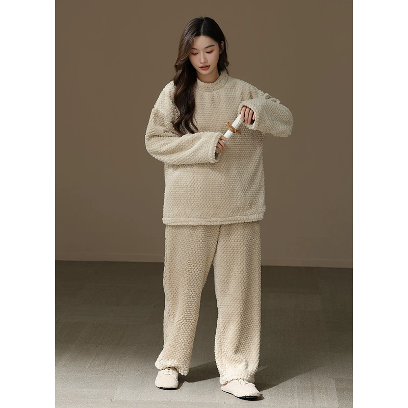 | nameOriginal | [Thick and Velvet] Women's Round Neck Pajama Set Autumn and Winter Coral Velvet Warm Solid Color Home Clothes Can Be Weared Outside |