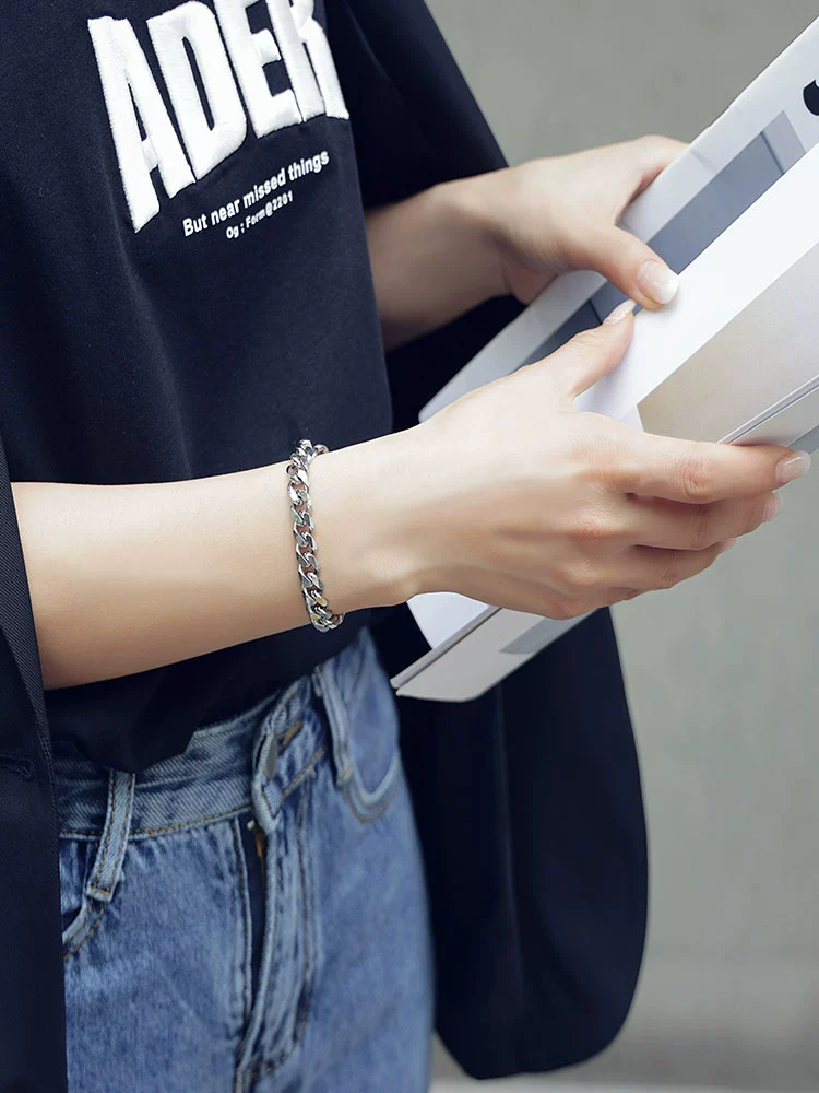 | nameOriginal | Thick bracelet 14K gold titanium steel hip hop ins fashion nude chain simple personality Cuban chain temperament jewelry men and women accessories |