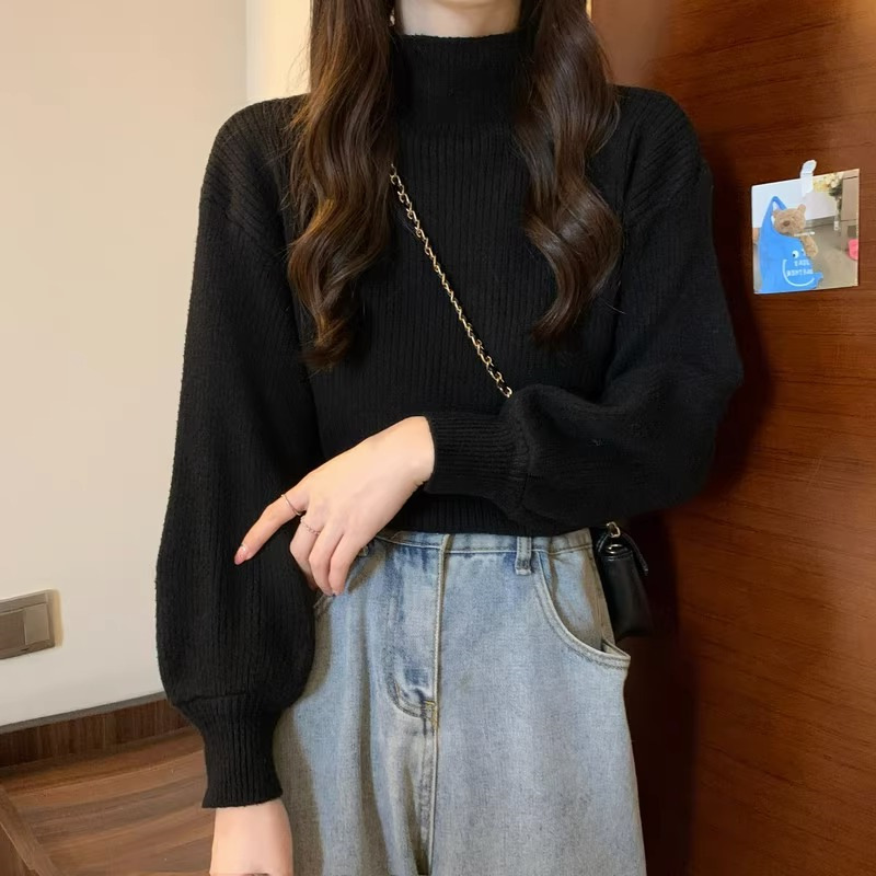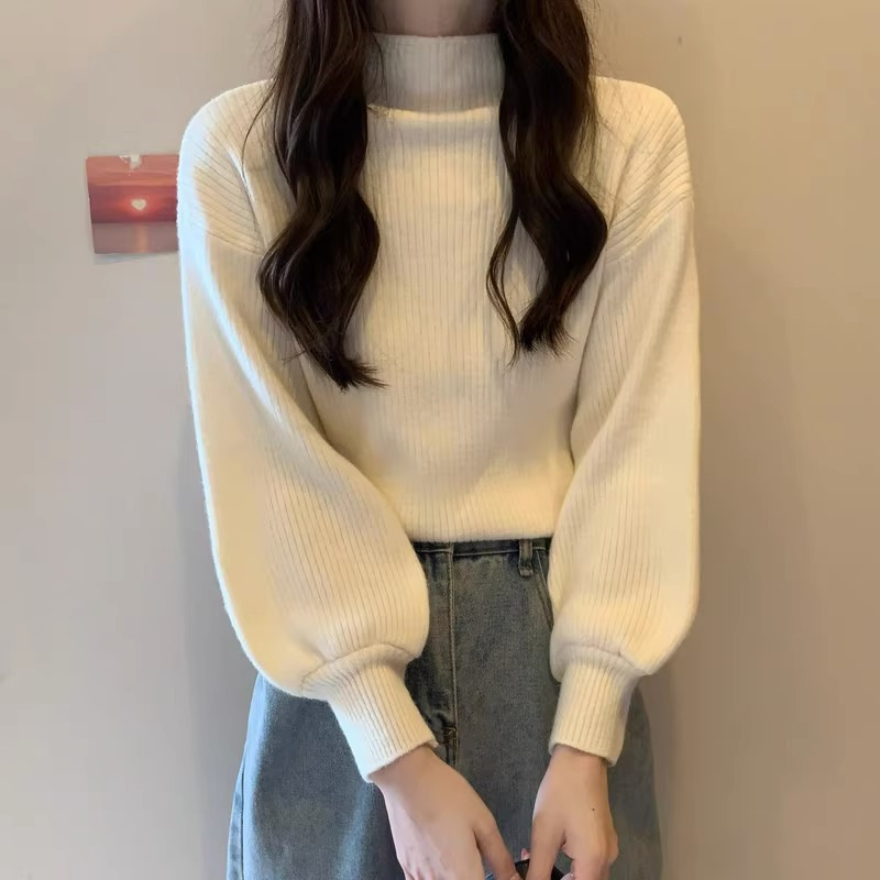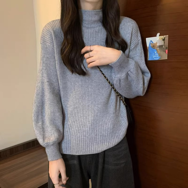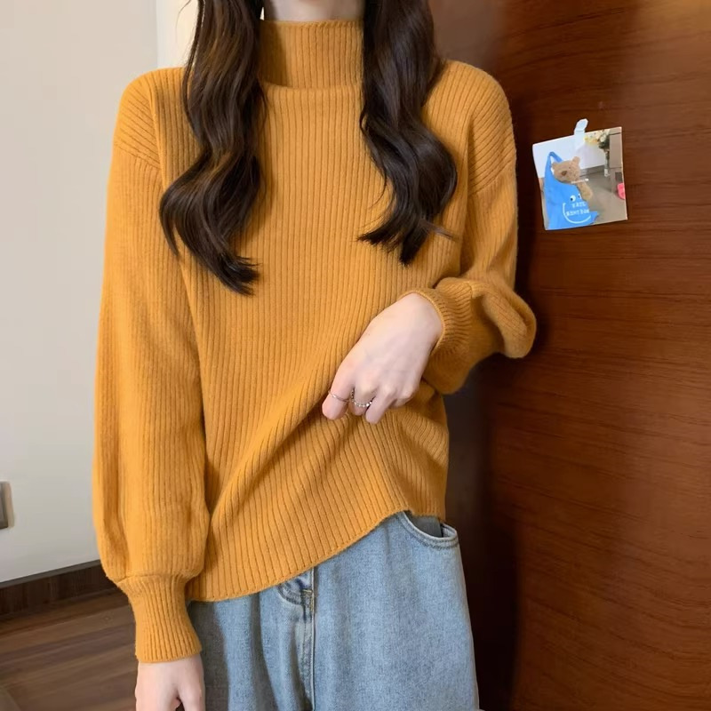 Thick half turtleneck lantern sleeve knitted bottoming shirt top women’s autumn and winter loose outer wear warm pullover sweater women’s clothing
