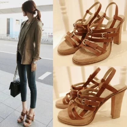 | nameOriginal | Thick heel Korean style retro brown open toe Roman women's shoes |