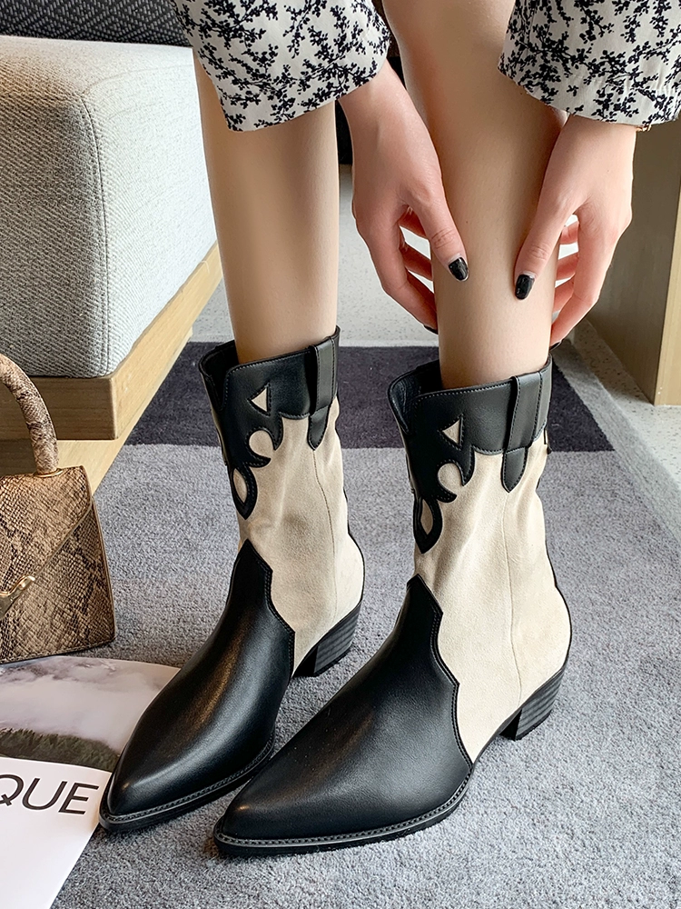 Thick-heeled short boots for women summer thin British style pointed toe mid-calf Chelsea boots 2024 new style western cowboy boots
