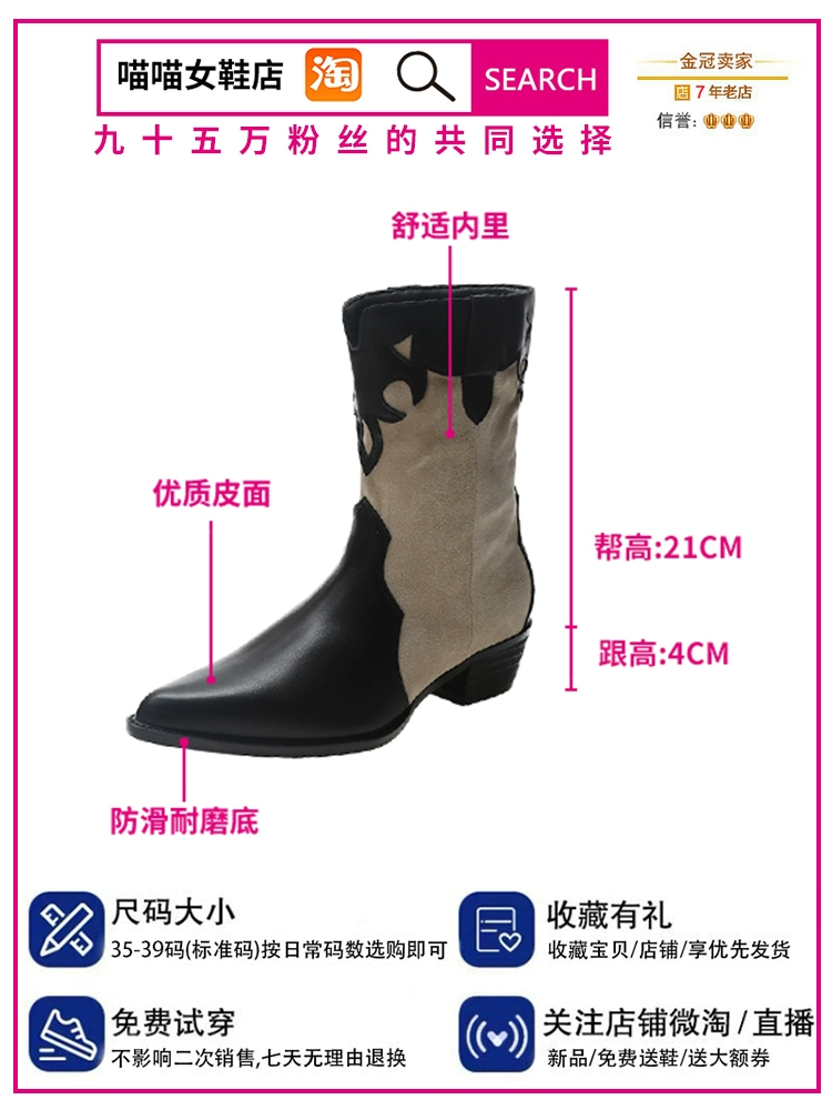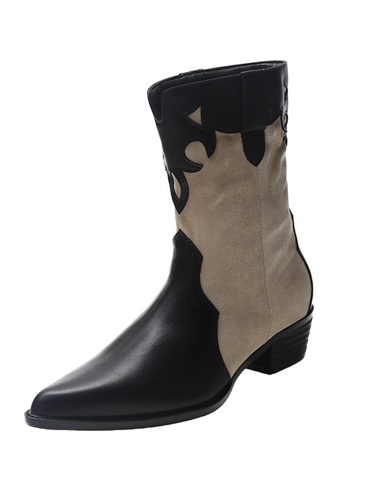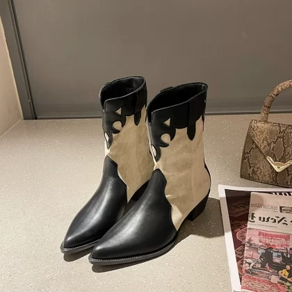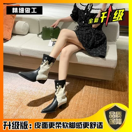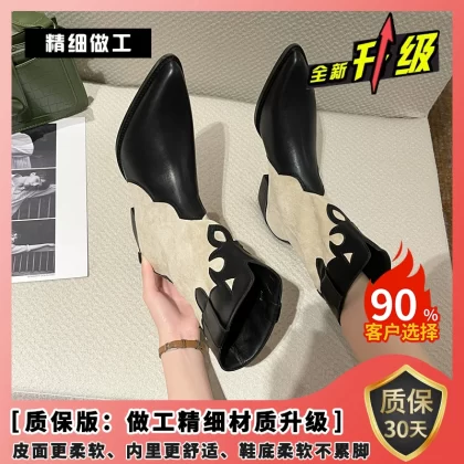 Thick-heeled short boots for women summer thin British style pointed toe mid-calf Chelsea boots 2024 new style western cowboy boots