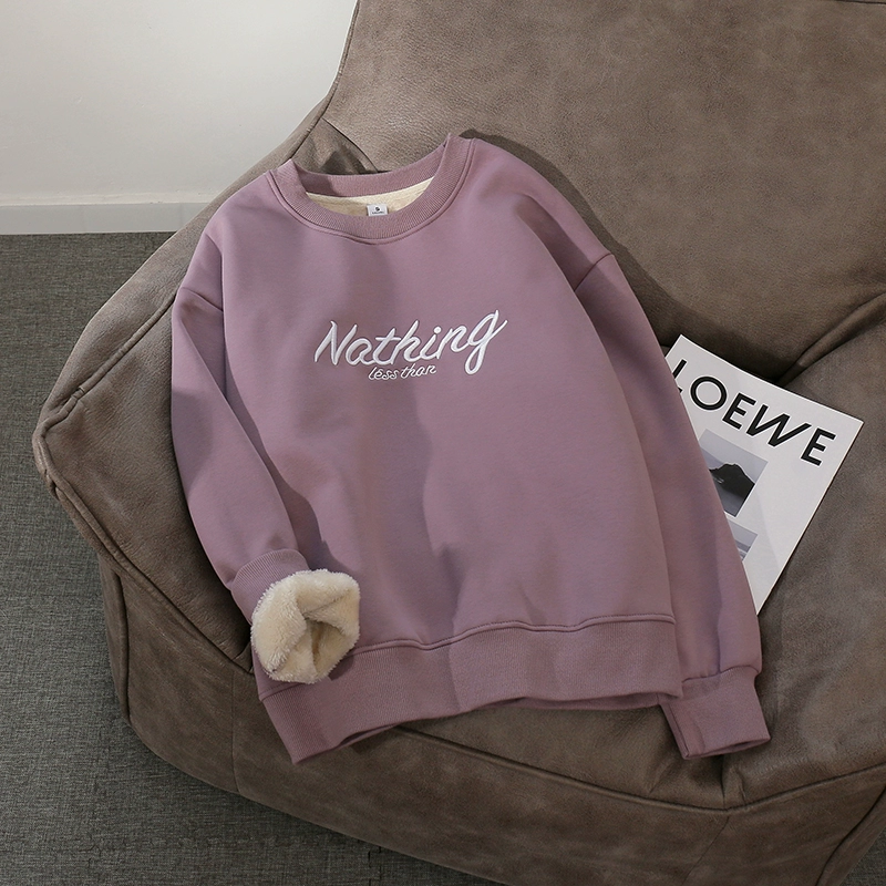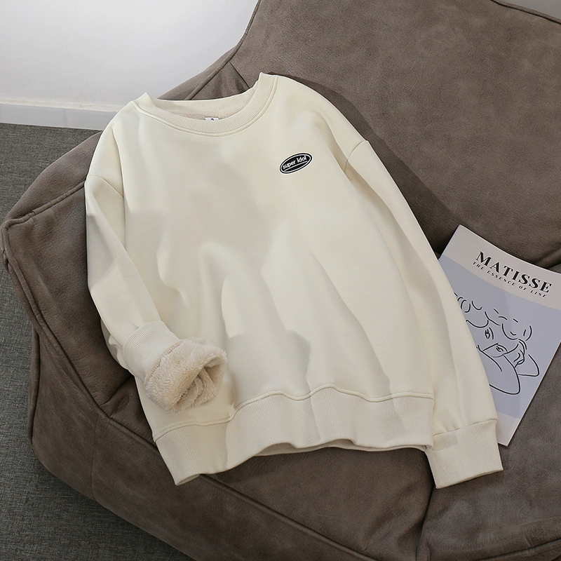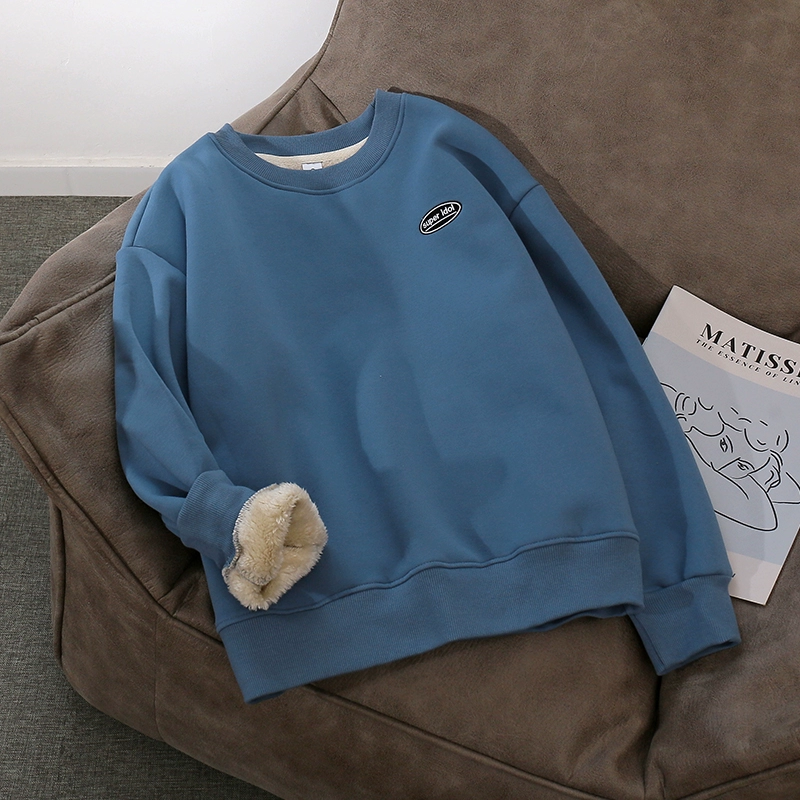 Thickened lamb fern warm loose pullover hat-free sweatshirt