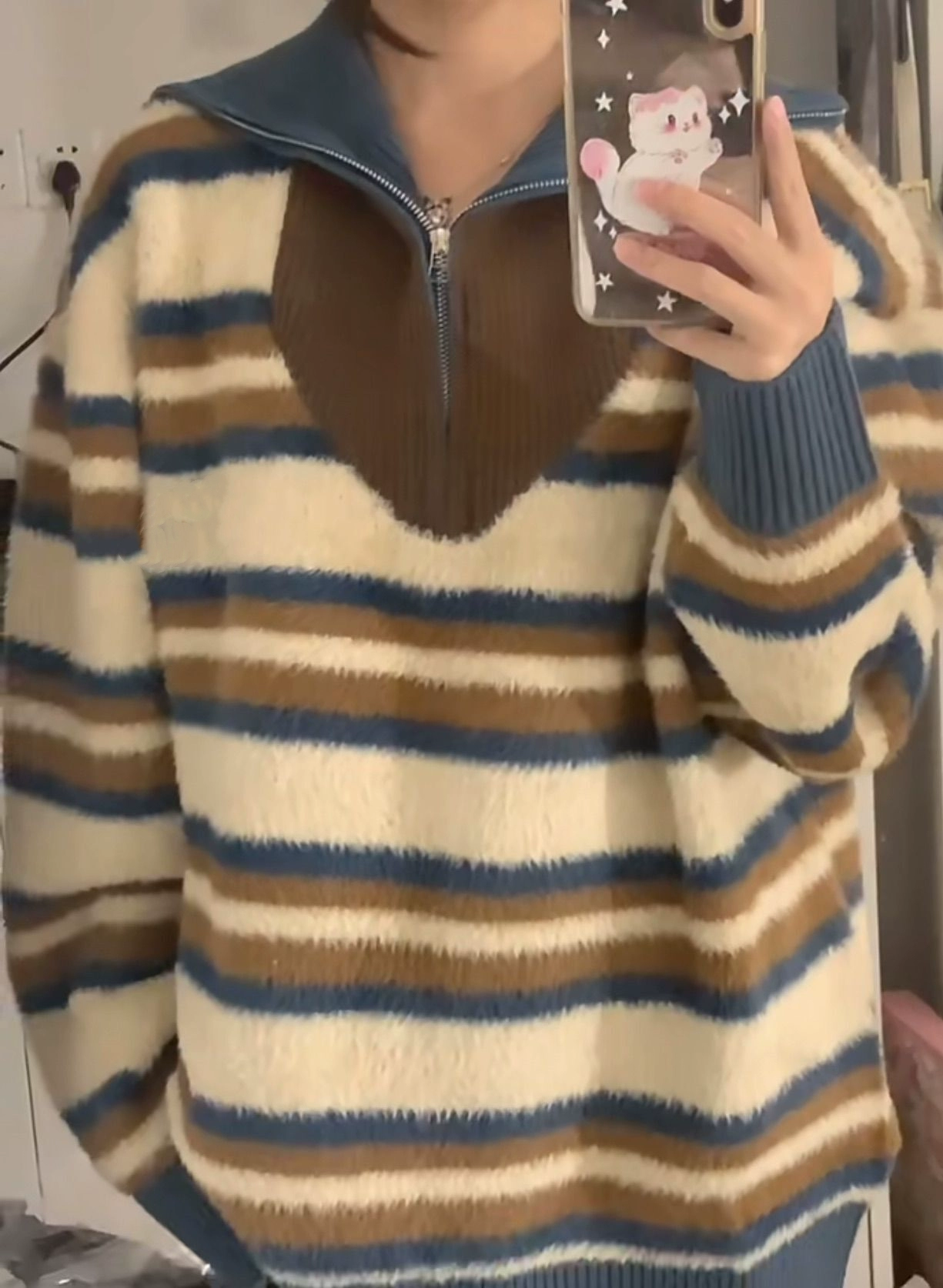 | nameOriginal | Thick mink velvet lapel loose striped sweater |
