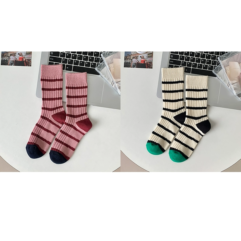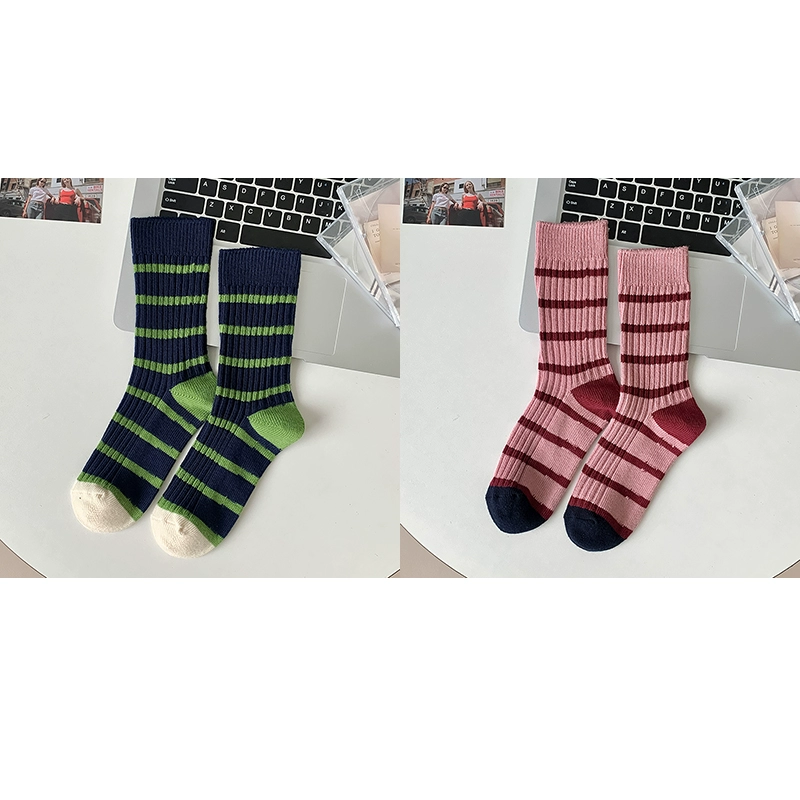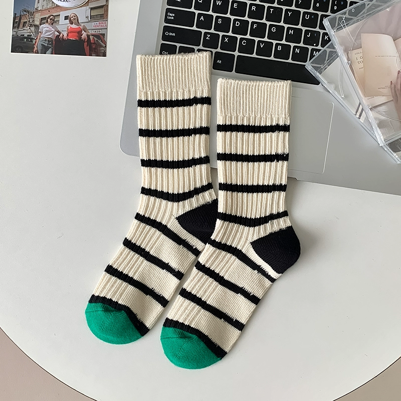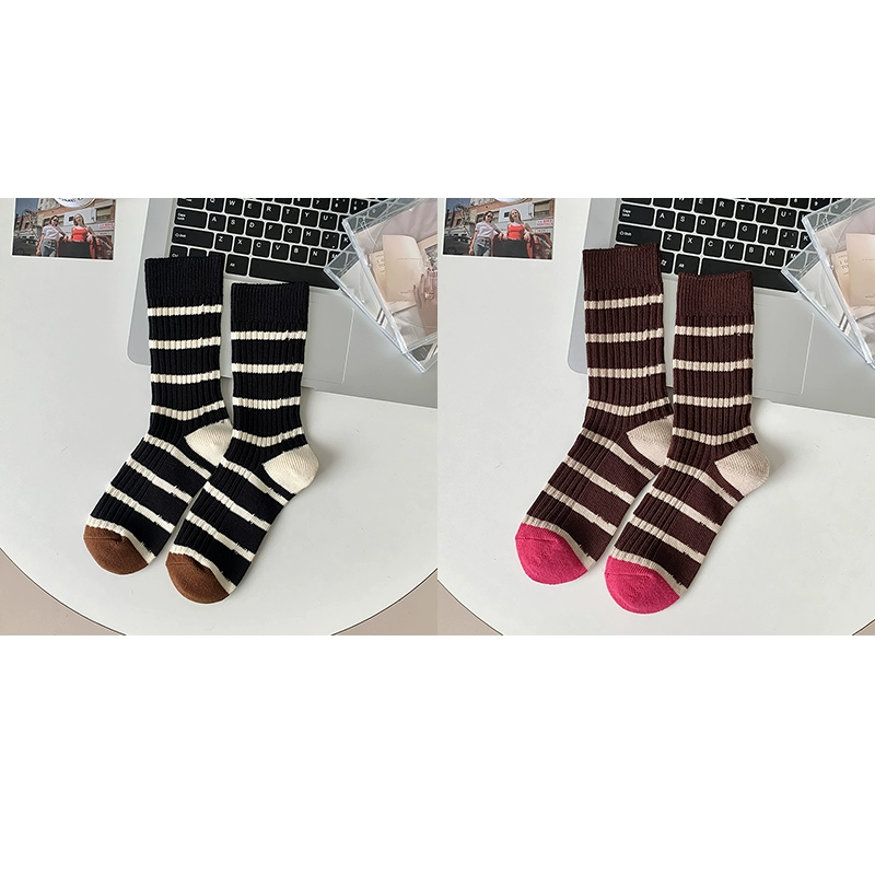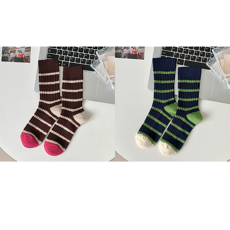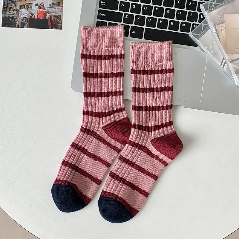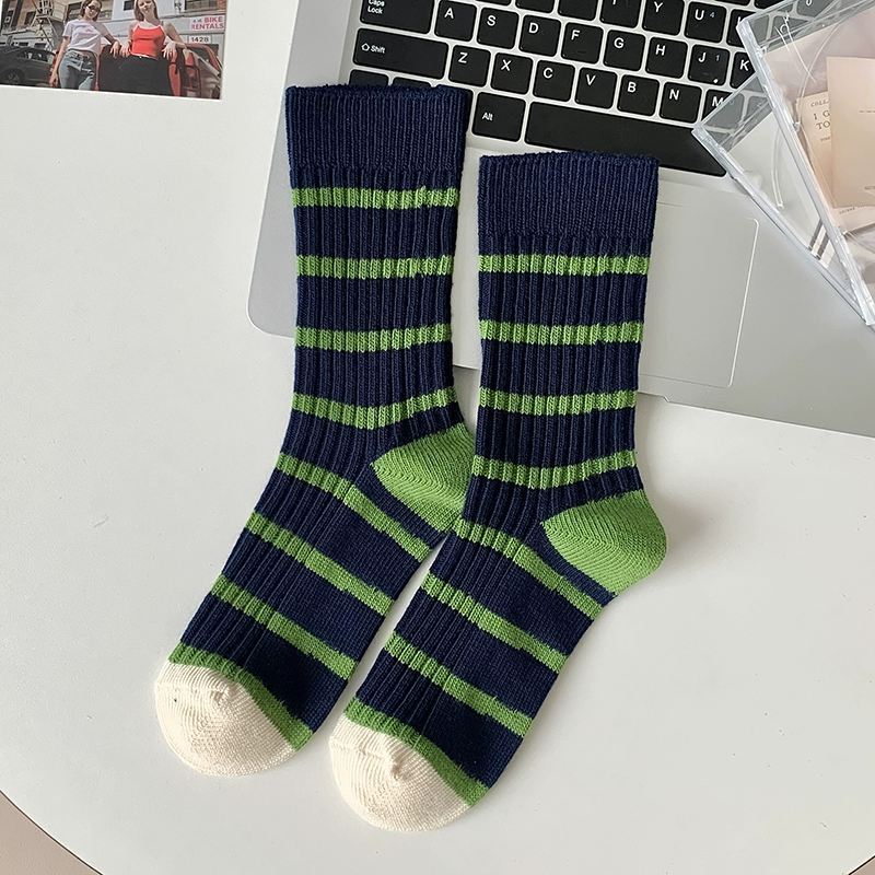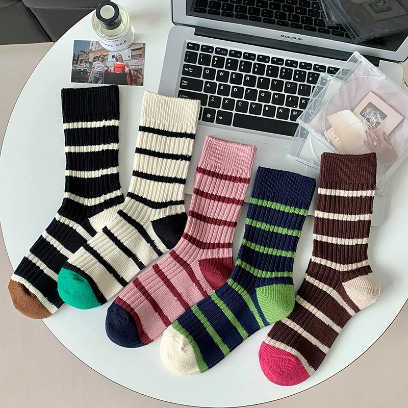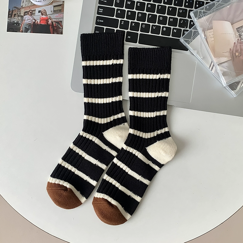 | nameOriginal | Thick needle contrast socks for women in autumn and winter spliced striped mid-calf socks spring and autumn pure cotton long-tube retro thick thread pile socks |