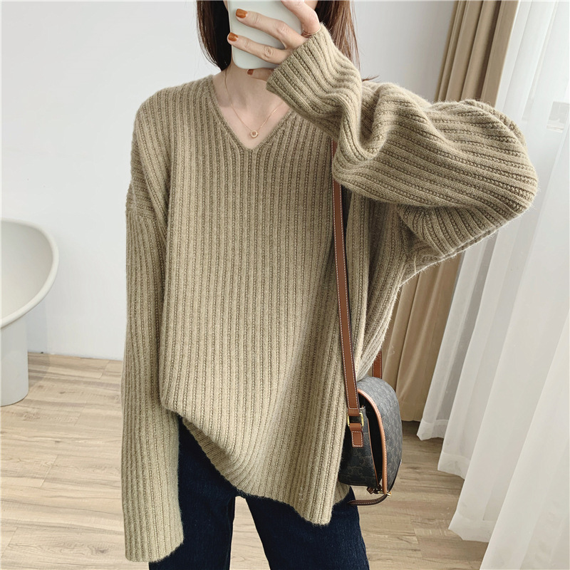 Thick Pit Strip Texture V-neck Lazy Soft Milk Sweater Women’s Korean-style Winter New Loose Base Sweater Jacket