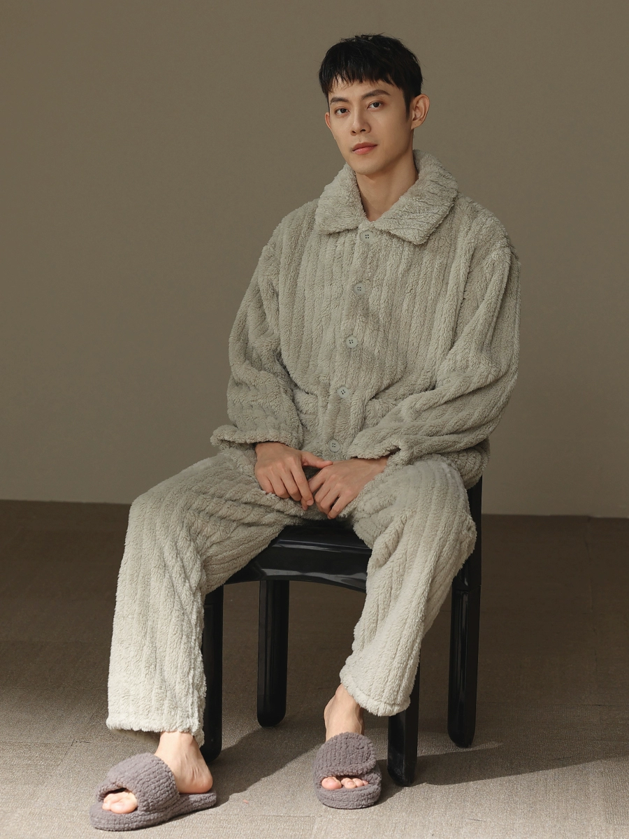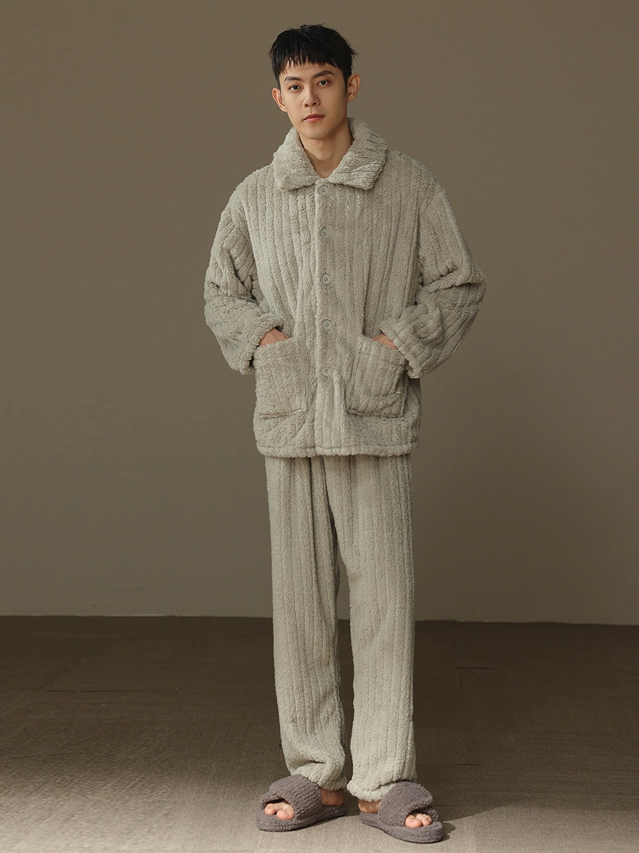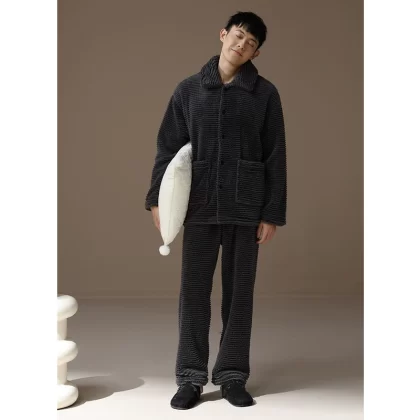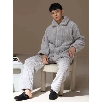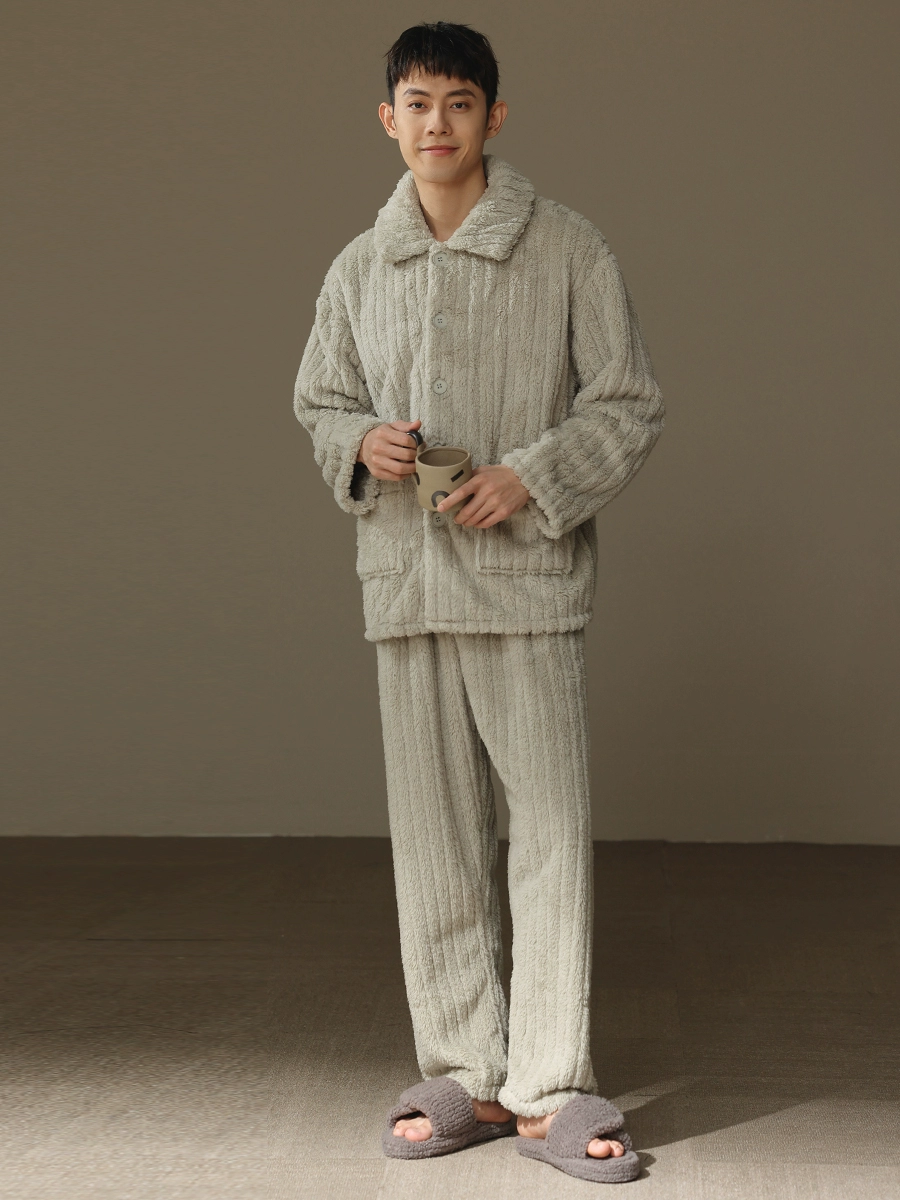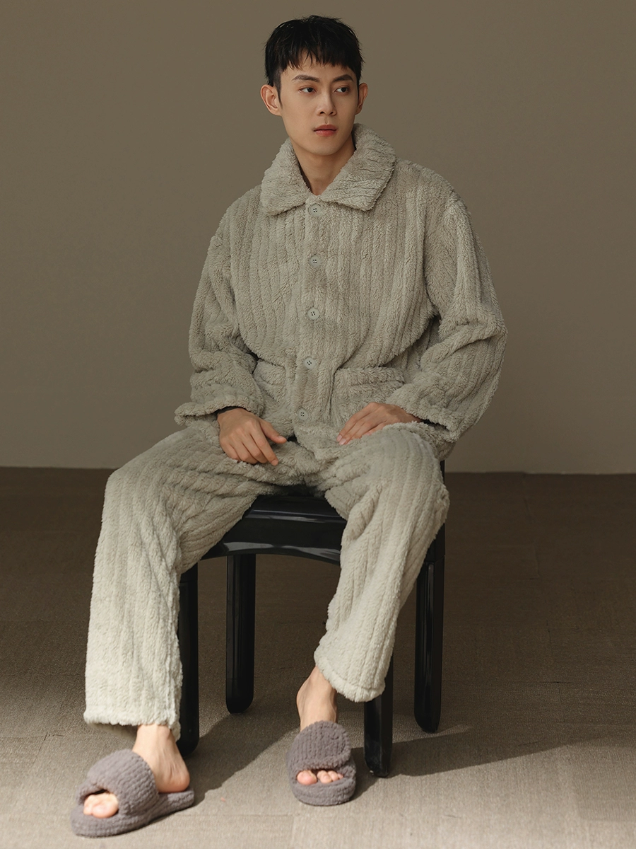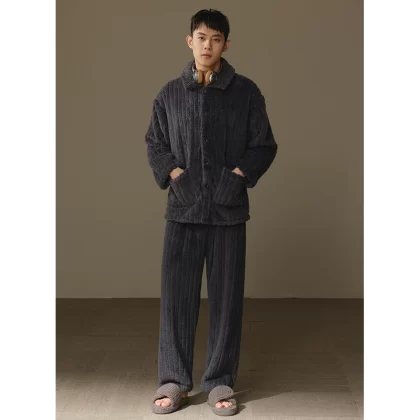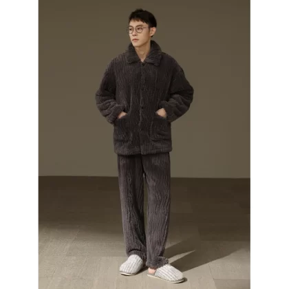| nameOriginal | "Thick plus velvet" coral velvet men's pajamas autumn and winter flannel suit warm plush cardigan home wear |