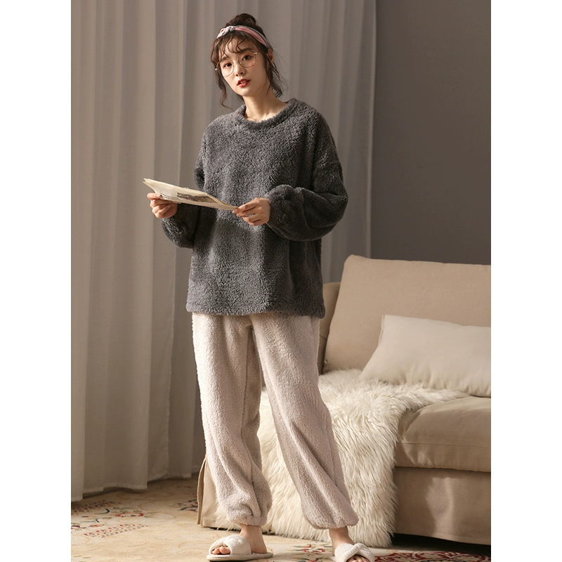 | nameOriginal | [Thick plus velvet] Pajamas for women winter coral velvet warm plush home wear autumn and winter solid color casual suit |