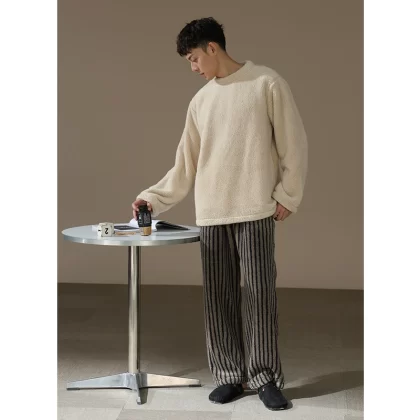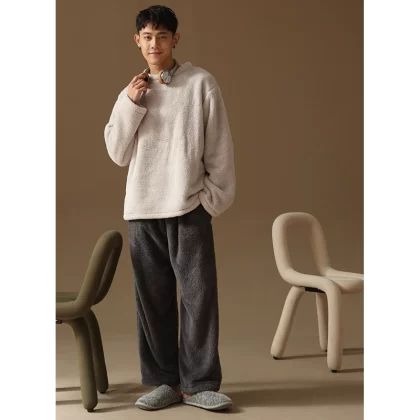 "Thick plus velvet" warm pajamas for men in autumn and winter coral velvet plush loose straight round neck pullover home clothes