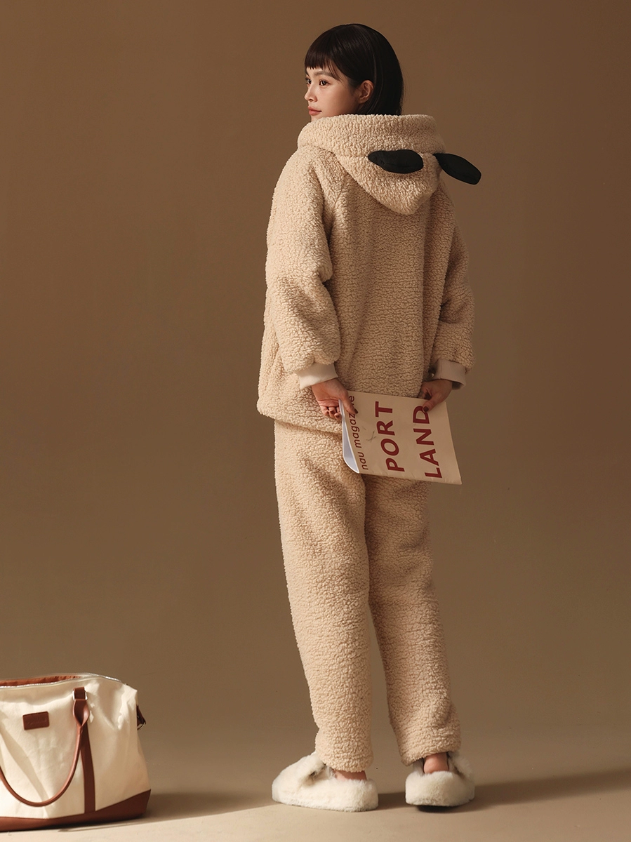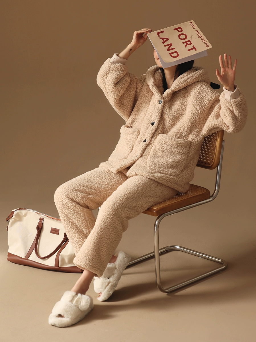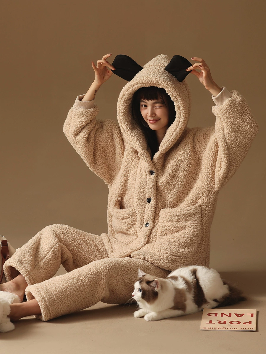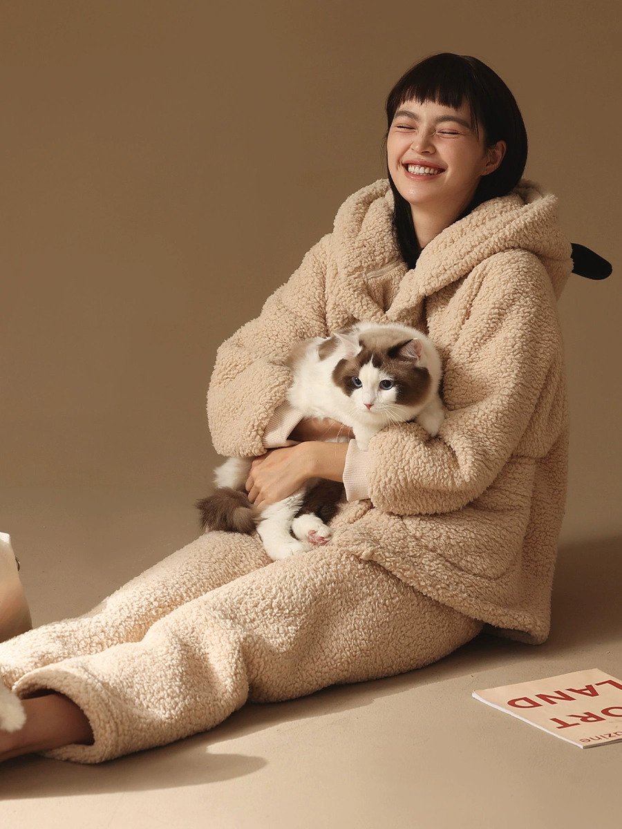 | nameOriginal | "Thick plus velvet" warm pajamas for women winter coral velvet flannel spring and autumn cute hooded cardigan home wear |