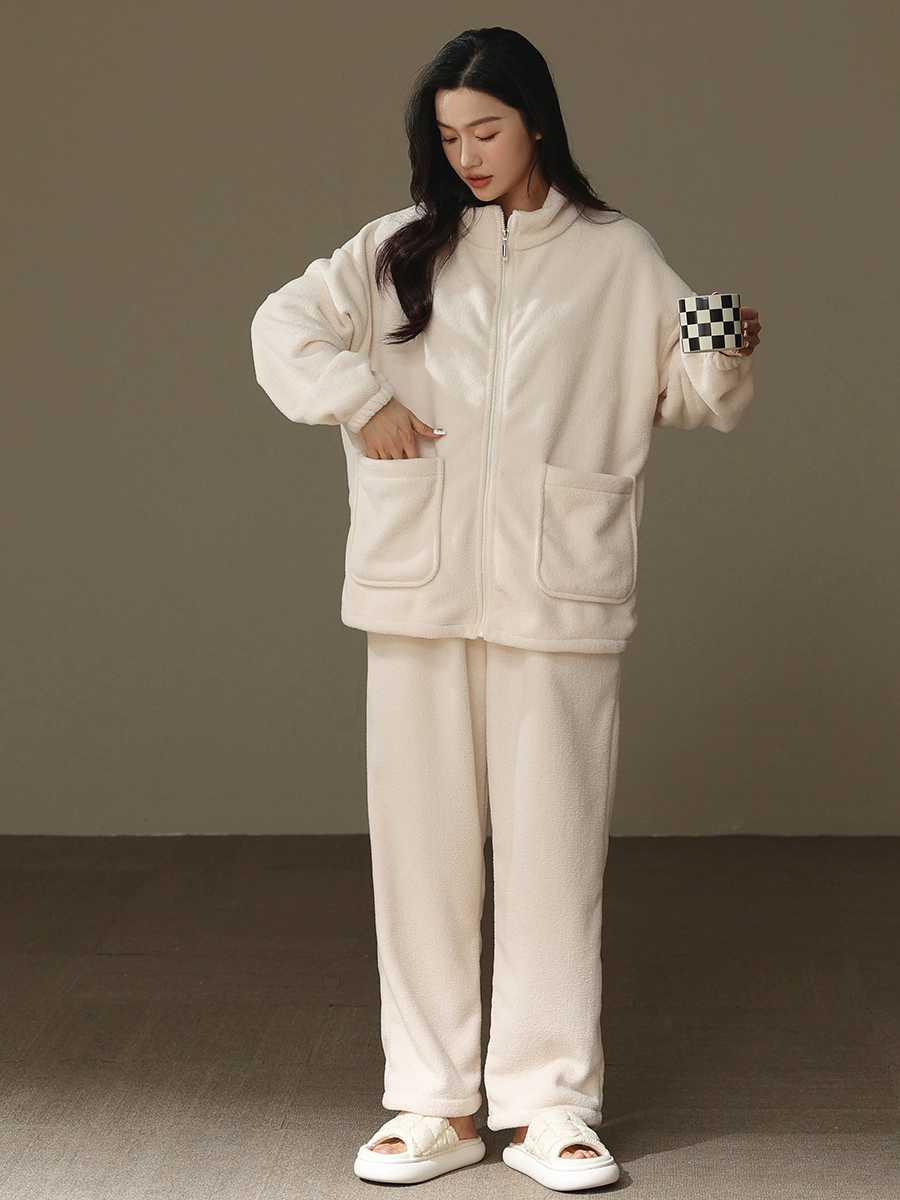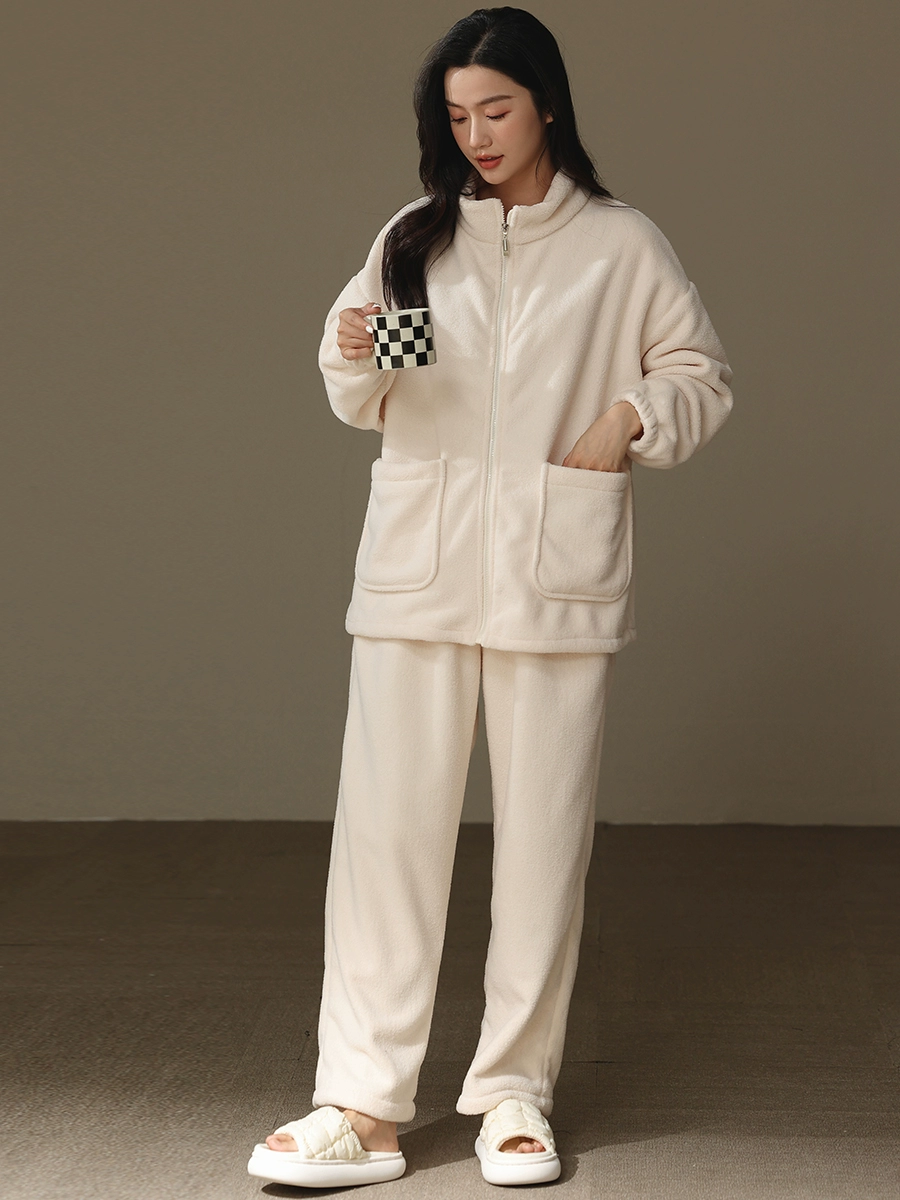 | nameOriginal | "Thick plush plush" plush pajamas for women in autumn and winter high collar zipper beige coral velvet and lambswool warm home clothes |