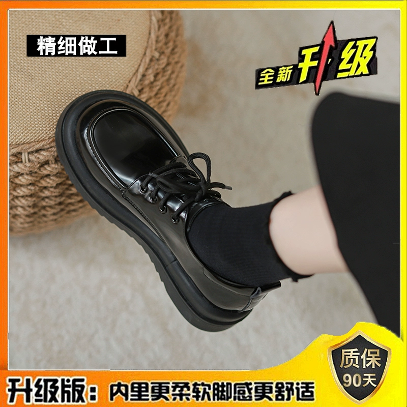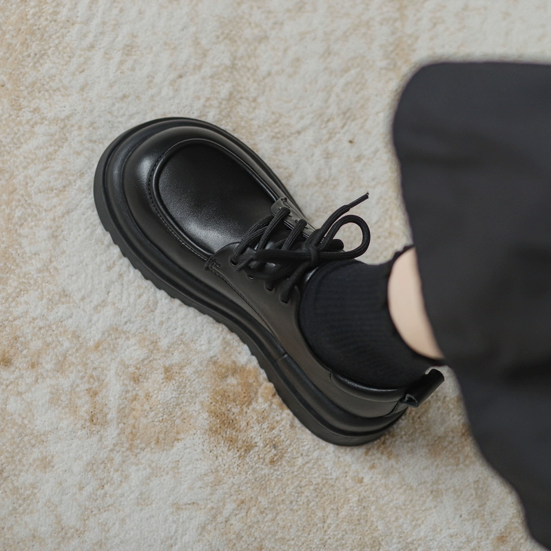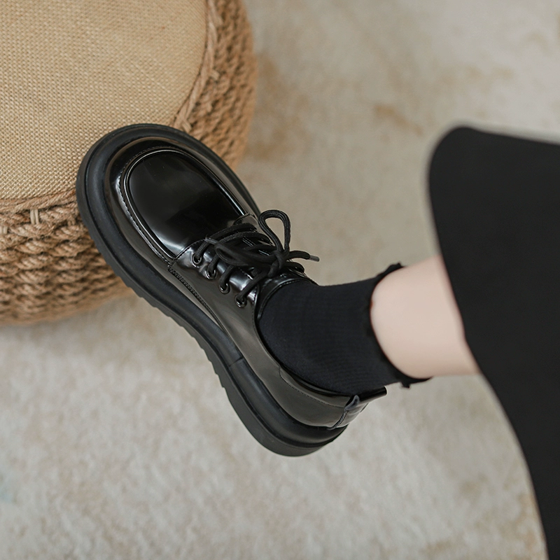 | nameOriginal | Thick sole black British style small leather shoes for women 2024 spring new loafers versatile jk round toe platform shoes |