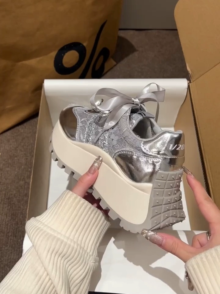 | nameOriginal | Thick sole breathable silver heightening mesh casual shoes lace |