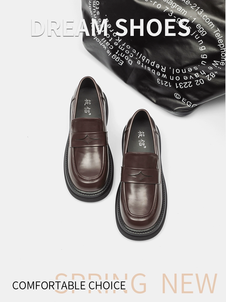 Thick sole spring college style large size 41 to 43 small leather shoes