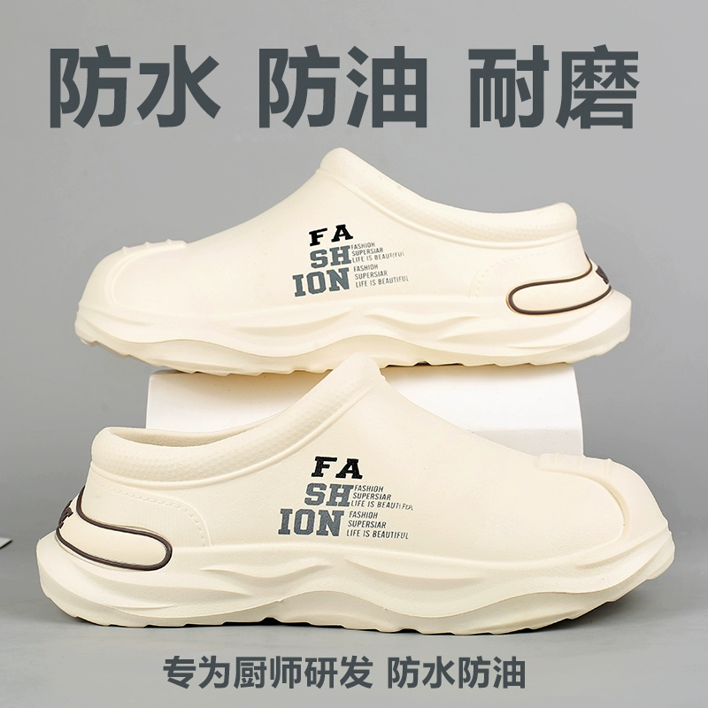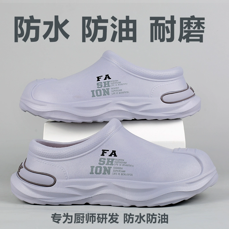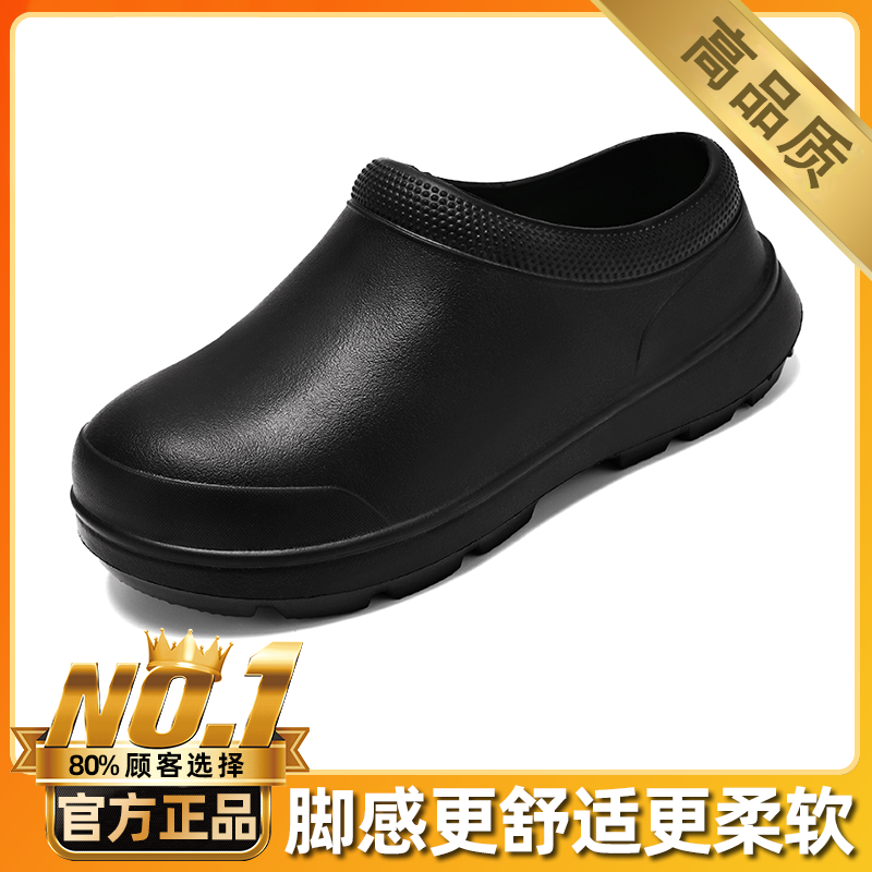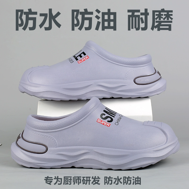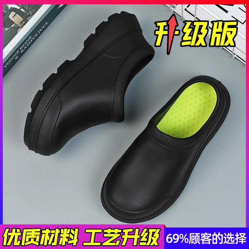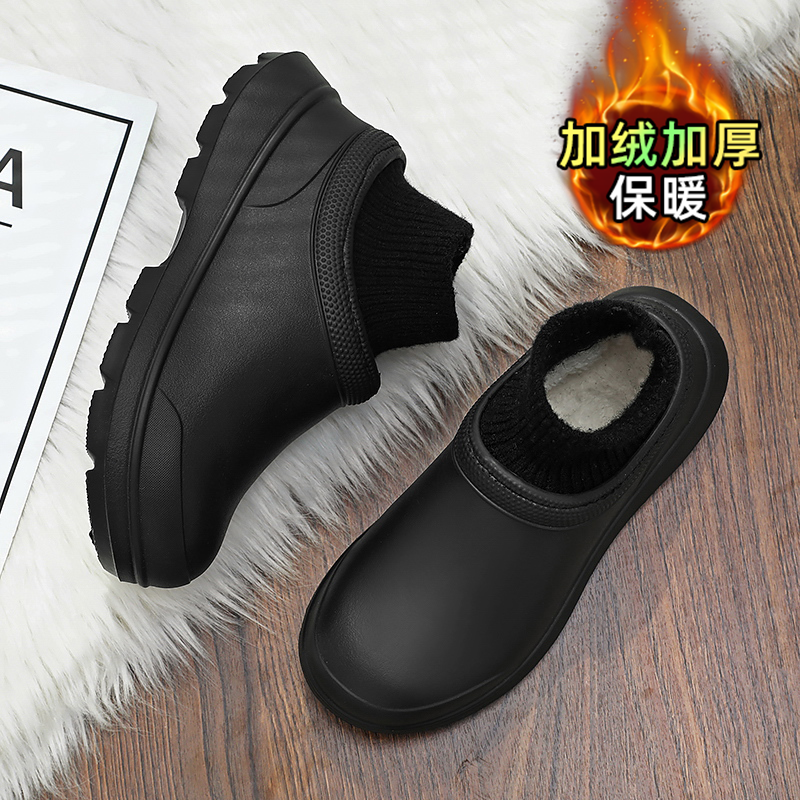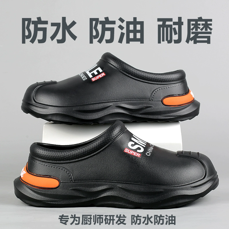 Thick sole spring oil-proof black slip-on chef’s shoes
