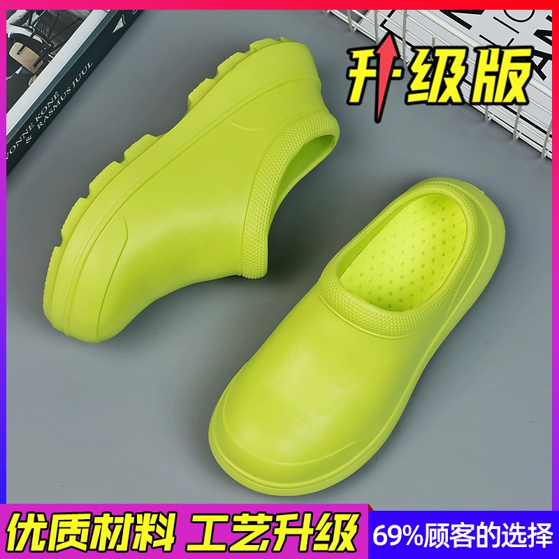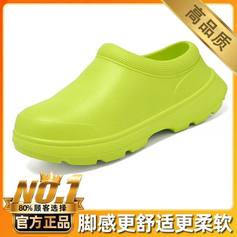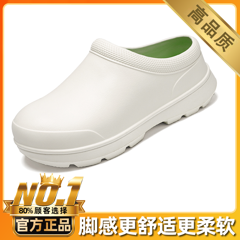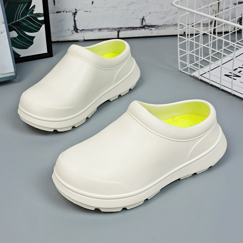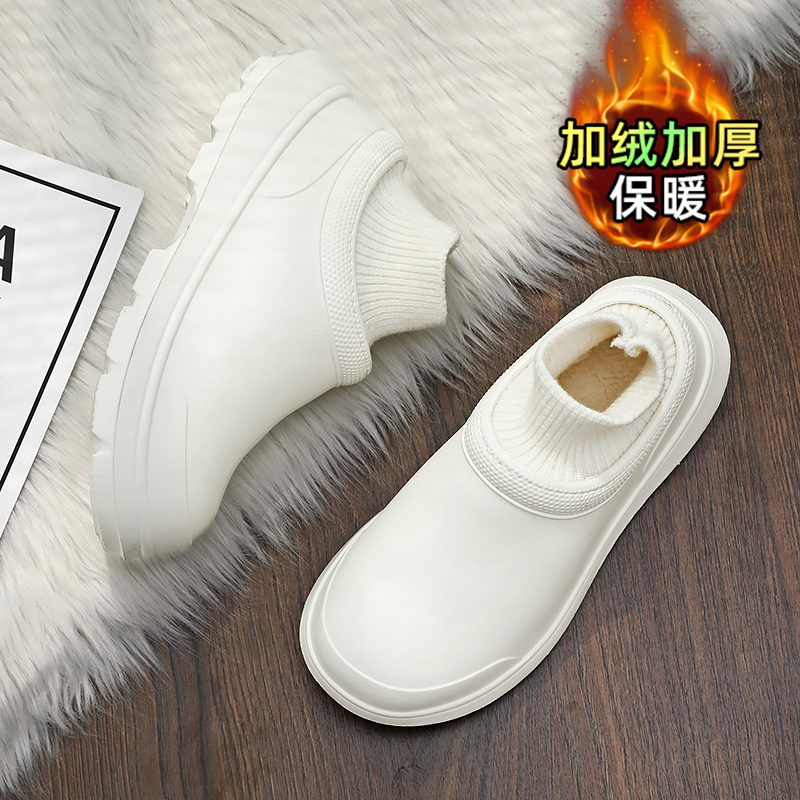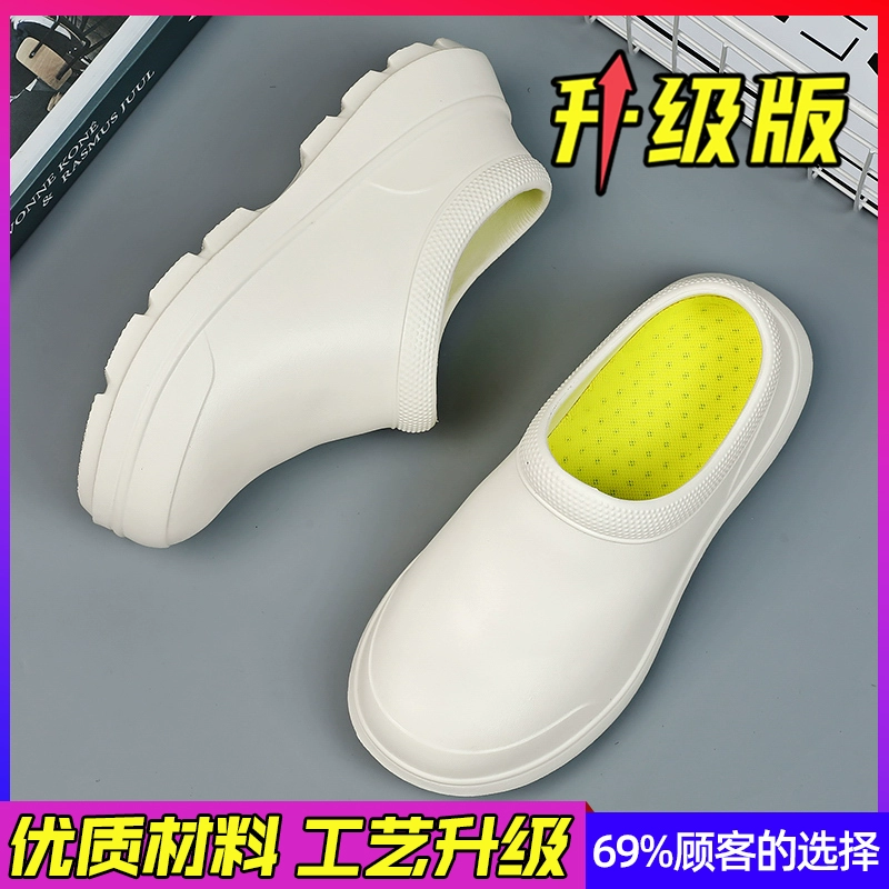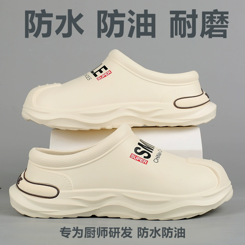 Thick sole spring oil-proof black slip-on chef’s shoes