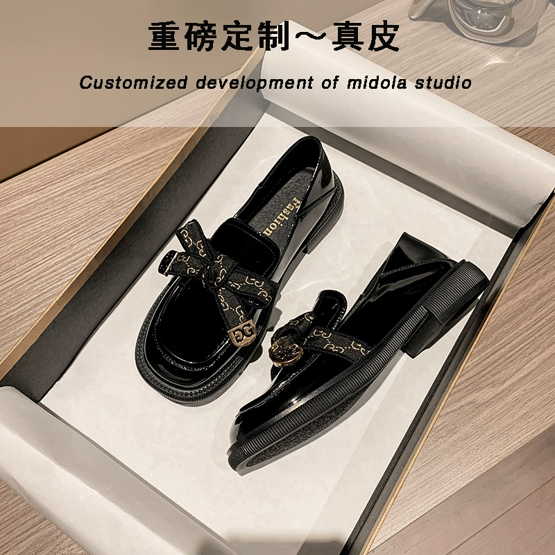 Thick-soled autumn and winter British style velvet black leather shoes