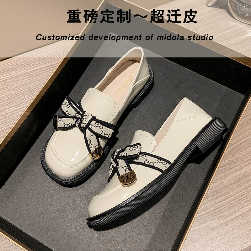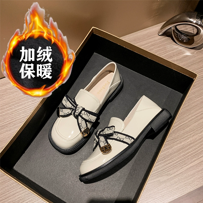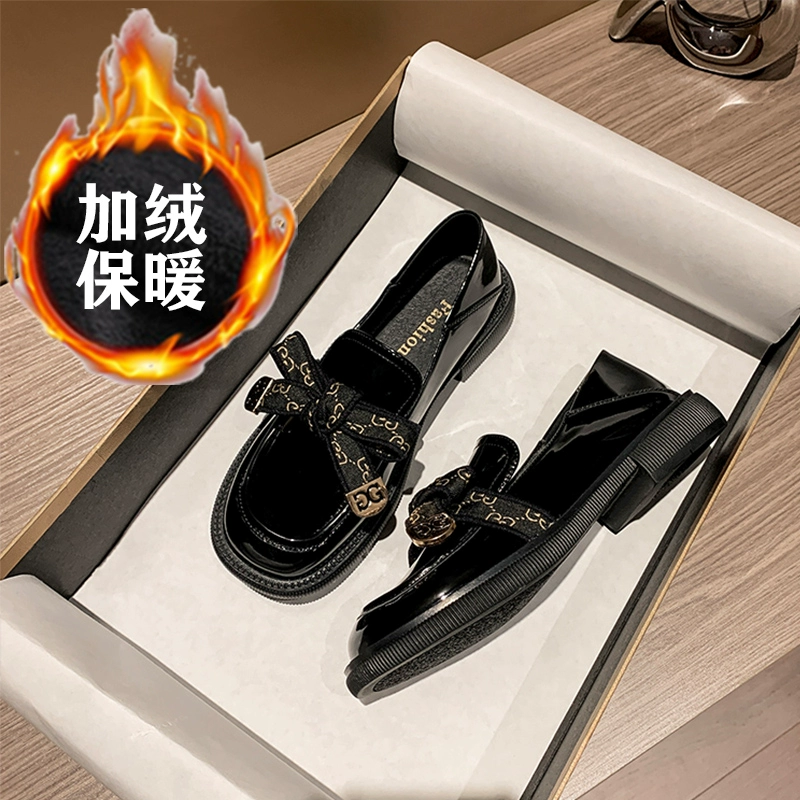 Thick bottom autumn and winter British wind and velvet black leather shoes