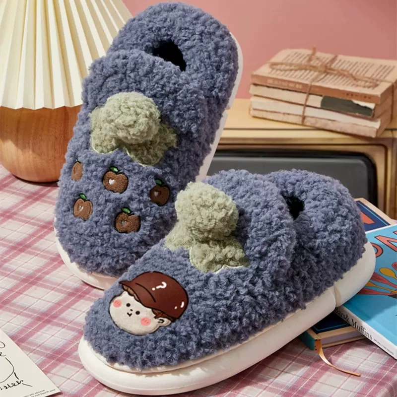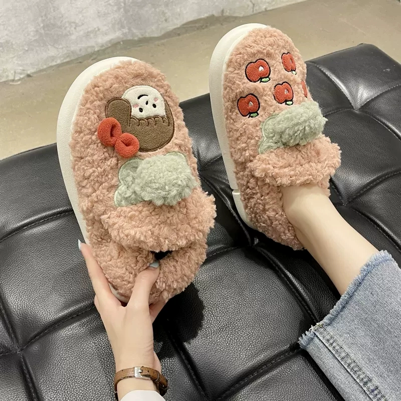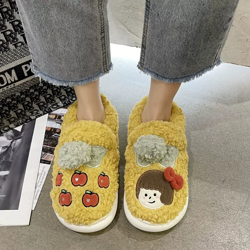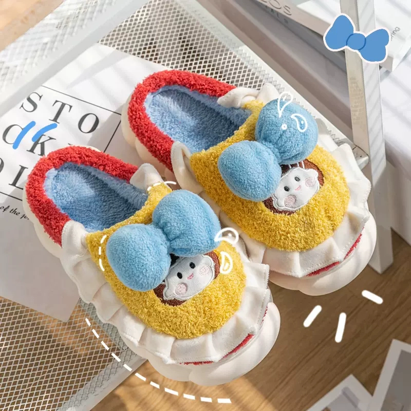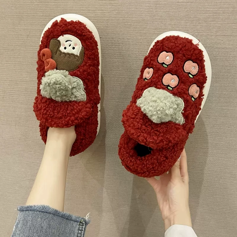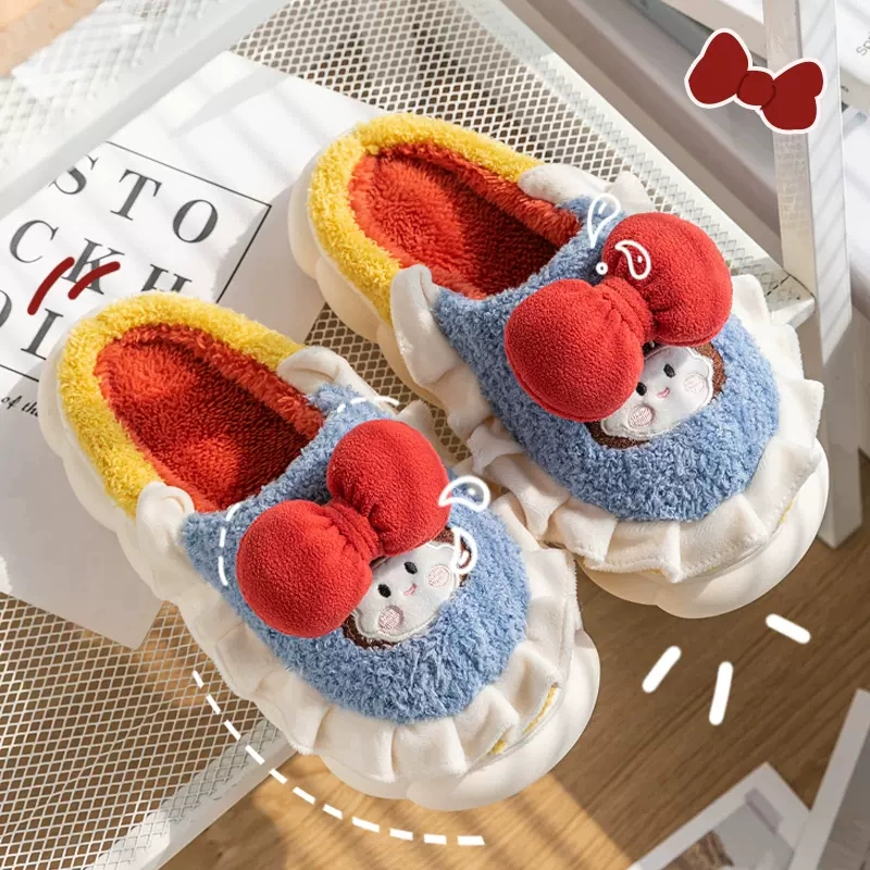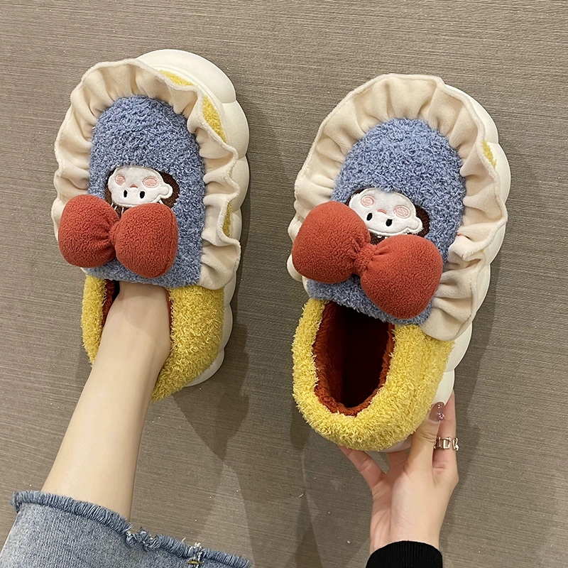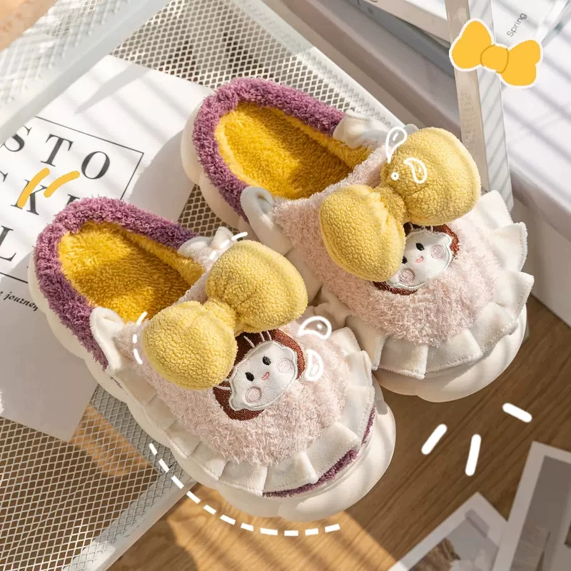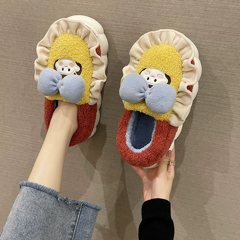 Thick-soled bag and princess plush warm confinement cotton slippers