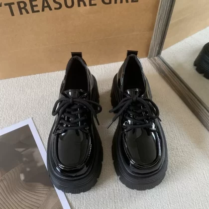 | nameOriginal | Thick-soled brown elevated lace-up round-toe retro loafers |
